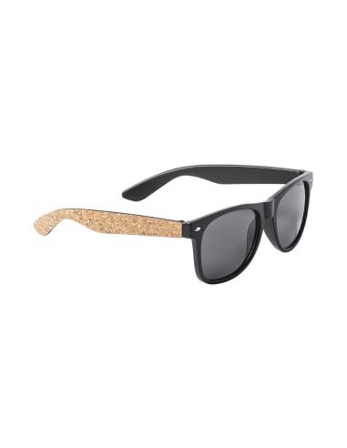 Gafas de sol de línea nature con protección UV400. Montura negra en resistente material PC, con lentes tintadas a juego y patas con recubrimiento de corcho natural. Presentadas en atractivo estuche de diseño eco.
