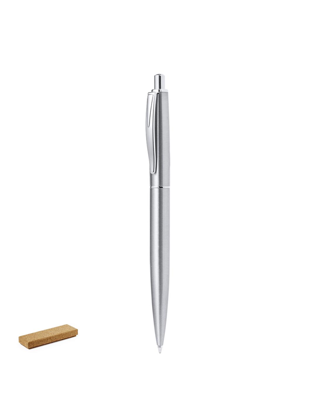 Refinado bolígrafo en Acero Inox Reciclado con mecanismo pulsador. Cuerpo en resistente Acero Inox Reciclado de acabado mate y clip metálico. Con pulsador retráctil, en tinta azul y con carga jumbo. Presentado individualmente en una elegante caja de corcho.El acero es uno de los materiales más demandados y que puede encontrarse casi en todas partes, desde productos de uso diario a grandes construcciones. Con innumerables propiedades, entre las que cabe destacar la durabilidad y su alto grado de reutilización, convirtiéndolo en una alternativa muy valorada en soluciones de sostenibilidad. Debidamente tratado, permite obtener nuevos recursos de infinita utilización.