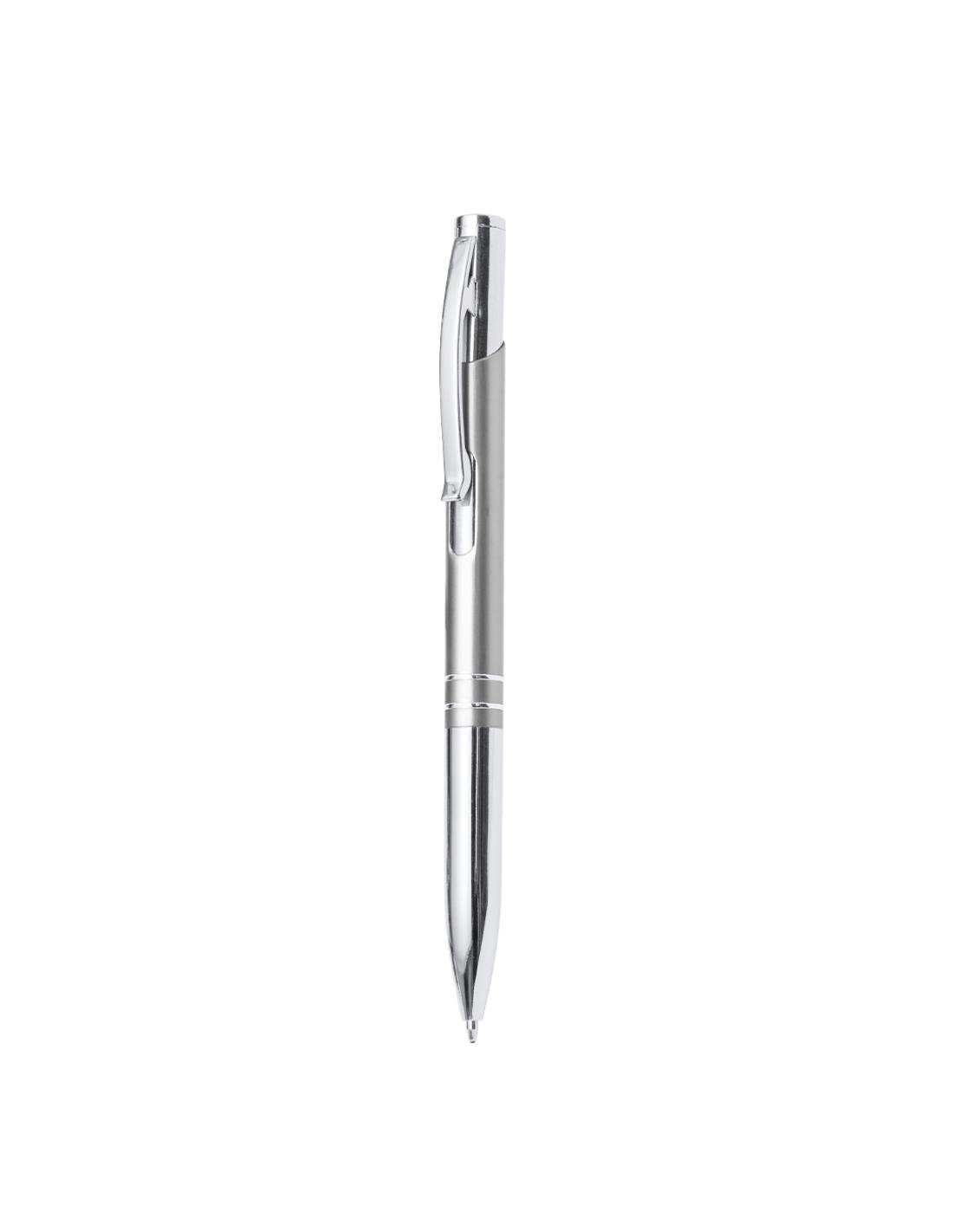 Original bolígrafo de mecanismo pulsador en elegante diseño bicolor. Cuerpo troquelado en aluminio de suave acabado en variados colores. Original clip, anillas y punta en plateado. En tinta azul.