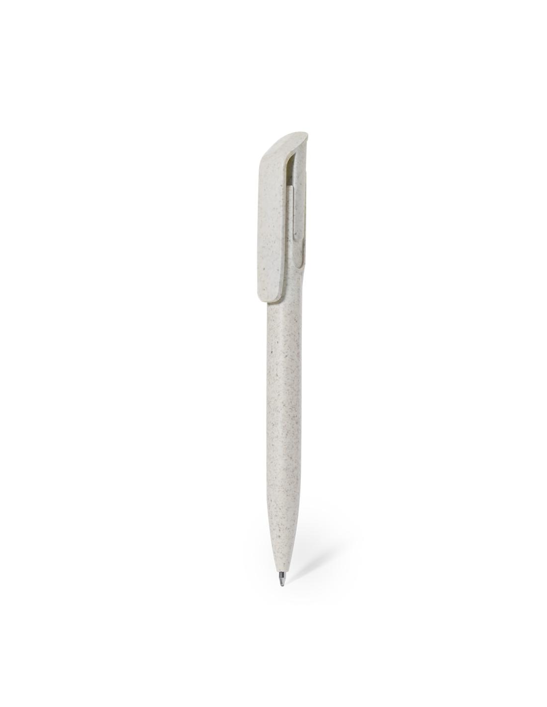 Práctico bolígrafo fabricado en caña de trigo. De mecanismo pulsador, en tinta azul y con logotipo Wheat Straw en la parte superior del bolígrafo. Con clip en variada gama de colores y cuerpo natural. La caña de trigo fomenta la utilización de materias primas naturales, reduciendo así las emisiones contaminantes.