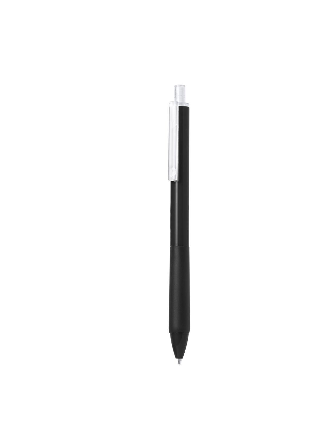 Bolígrafo de mecanismo pulsador fabricado en ABS reciclado. Clip y pulsador transparentes, con cuerpo de suave acabado en variados colores y empuñadura a juego. Logotipo ABS reciclado en la parte superior del bolígrafo. En tinta azul.El RABS es un plástico altamente reciclable de gran resistencia y con multitud de aplicaciones que lo convierten en una solución eco-friendly. Con certificación RCS, que garantiza el origen reciclado del mismo.
