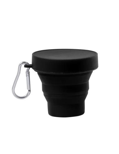 Vaso plegable de 160 ml de capacidad. Fabricado en silicona de alta calidad con tapón a juego. Con cuerpo flexible de acabado mate, este vaso puede ser plegado para un cómodo y sencillo almacenamiento. Incluye mosquetón metálico para fácil transporte. Libre de BPA. Disponible en variada gama de colores. Presentado en caja diseño kraft.