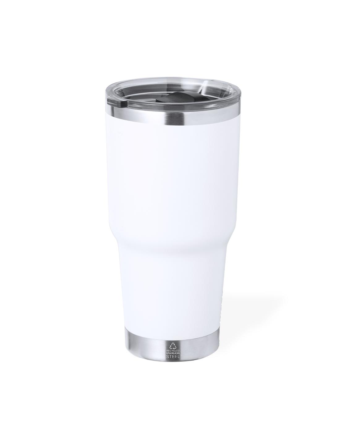 Vaso térmico fabricado en acero inox reciclado de doble pared y 600 ml de capacidad. Con dosificador en tapa y abrefácil, libre de BPA. Es ideal para tener en tu escritorio, mesa o en cualquier superficie donde disfrutar tranquilamente de tu bebida favorita. Con logotipo Acero Inox Reciclado. El acero es uno de los materiales más demandados y que puede encontrarse casi en todas partes, desde productos de uso diario a grandes construcciones. Con innumerables propiedades, entre las que cabe destacar la durabilidad y su alto grado de reutilización, convirtiéndolo en una alternativa muy valorada en soluciones de sostenibilidad. Debidamente tratado, permite obtener nuevos recursos de infinita utilización.
