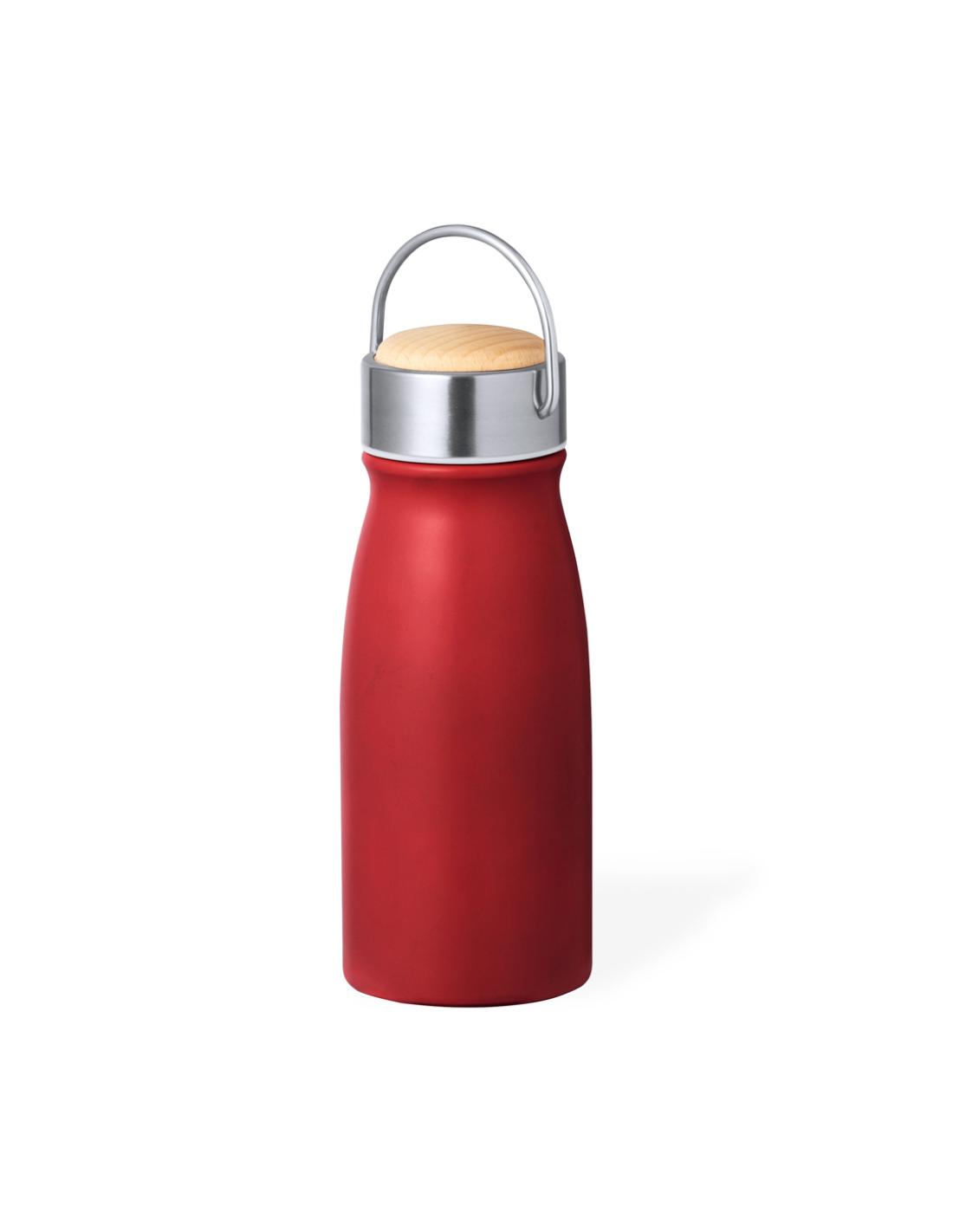 Bidón térmico de doble capa con original estilo y 350 ml de capacidad. Cuerpo en acero inox con tapón de seguridad a rosca en acero inox, con detalle en madera y asa integrada. Disponible en variada gama de colores. Presentado en caja individual de diseño eco en cartón kraft.