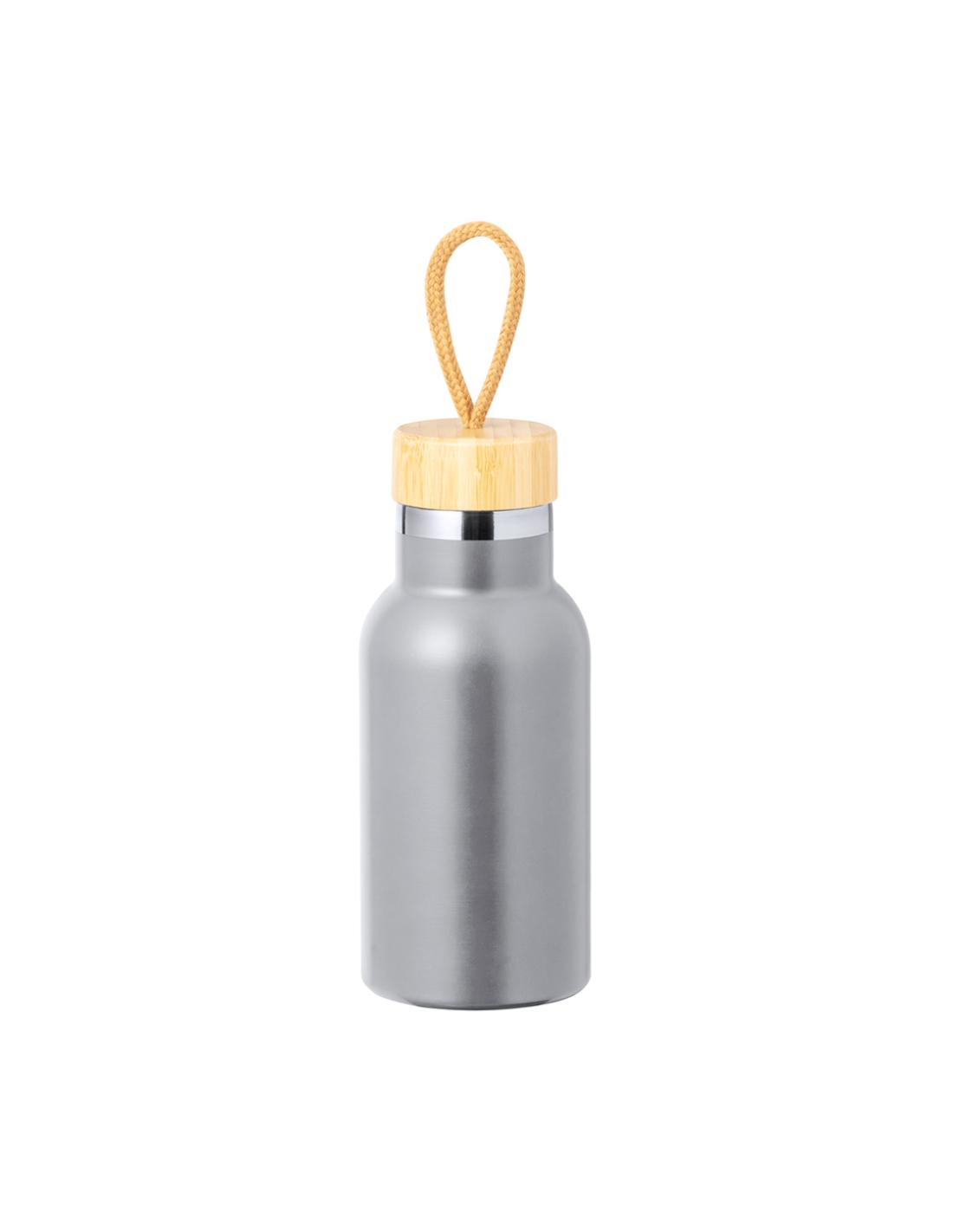 Bidón térmico de 350 ml de capacidad, fabricado en acero inox de doble pared. Incluye original tapón a rosca en bambú y asa para transporte en color natural. Disponible en variada gama de colores y presentado en caja individual de diseño kraft.