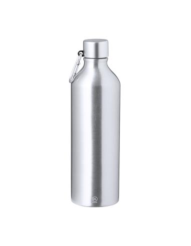 Bidón de Aluminio Reciclado de 800 ml de capacidad. De acabado mate, con tapón a rosca con mosquetón metálico para un fácil transporte y libre de BPA. Disponible en elegantes colores brillo. Presentado en caja individual de diseño kraft. El Aluminio Reciclado es un material con posibilidades de reciclaje casi infinitas, sin perder sus propiedades originales y consumiendo menos energía en este proceso.Certificación GRS (Global Recycled Standard / Estándar de Reciclaje Global), que garantiza el origen reciclado del material usado para fabricar el producto.