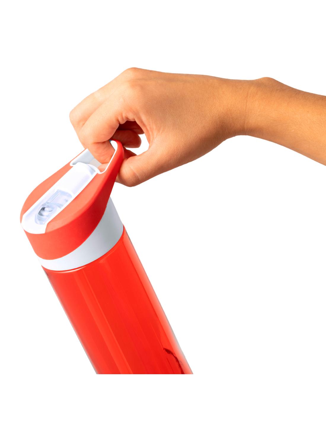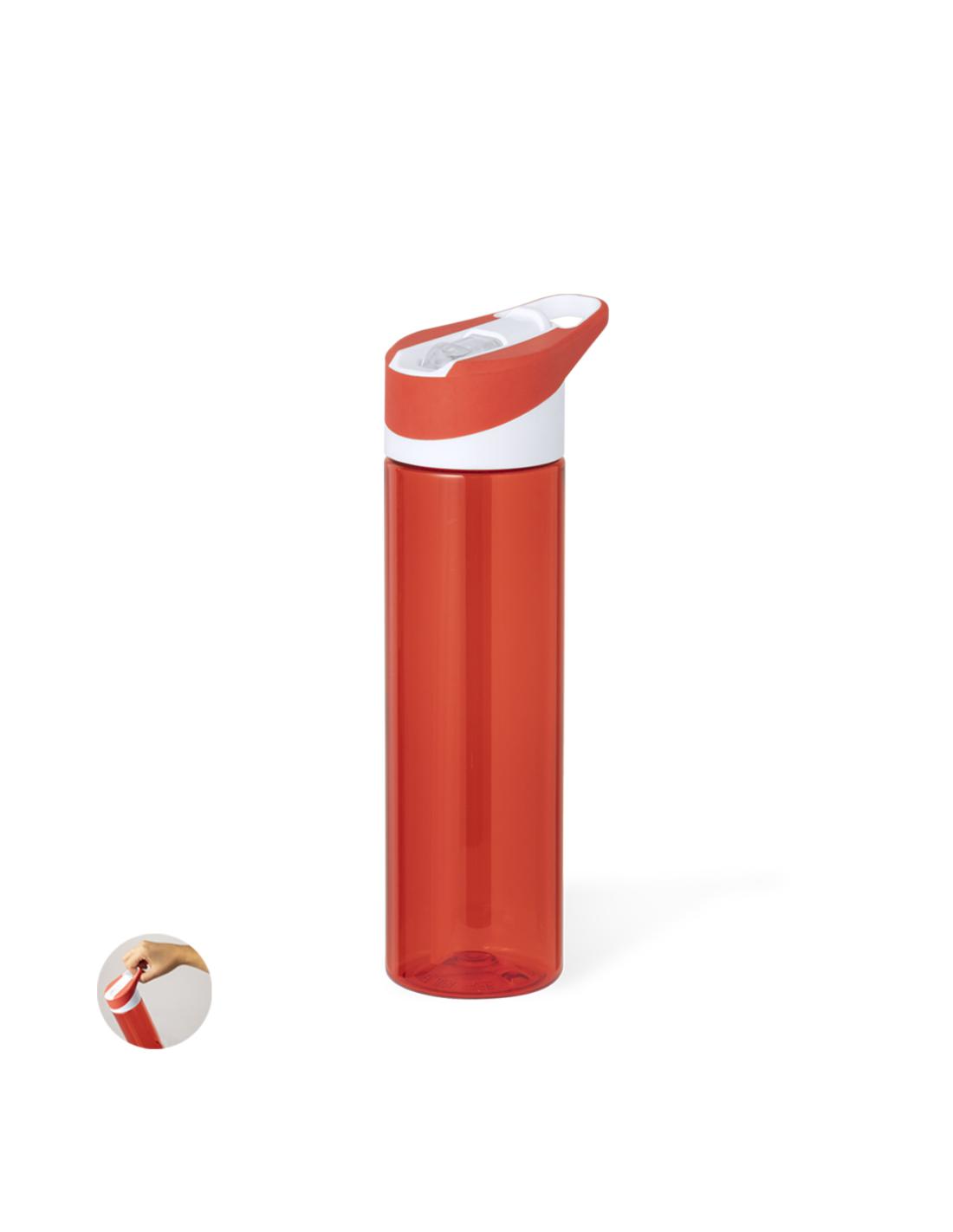 Bidón en RPET de 600 ml de capacidad. Libre de BPA, con sistema de fácil apertura, dosificador con pajita incluida y asa de transporte a juego. Disponible en variada gama de colores brillantes y presentado en atractiva caja de diseño kraft.El material RPET se elabora a partir de plástico reciclado, para así fomentar la reutilización de residuos plásticos y ayudar a la sostenibilidad del planeta.
