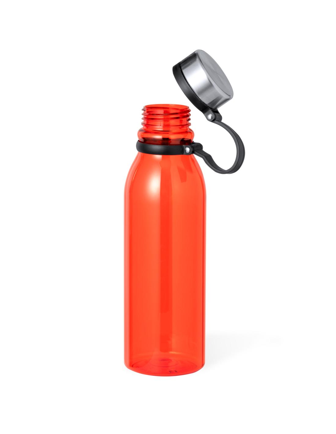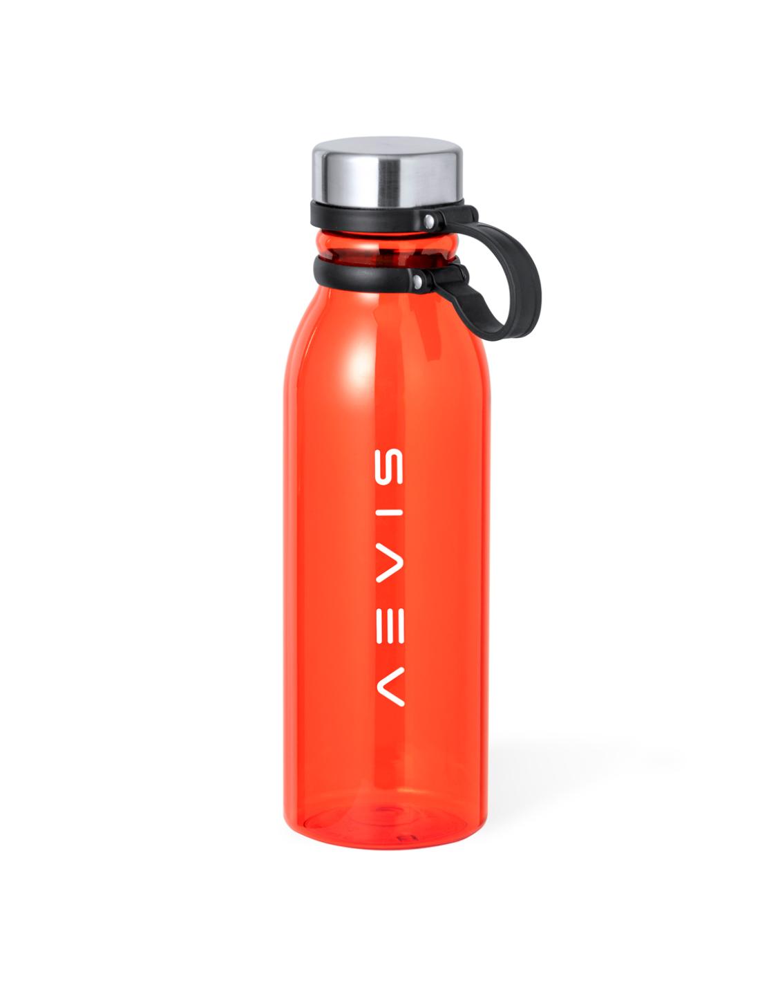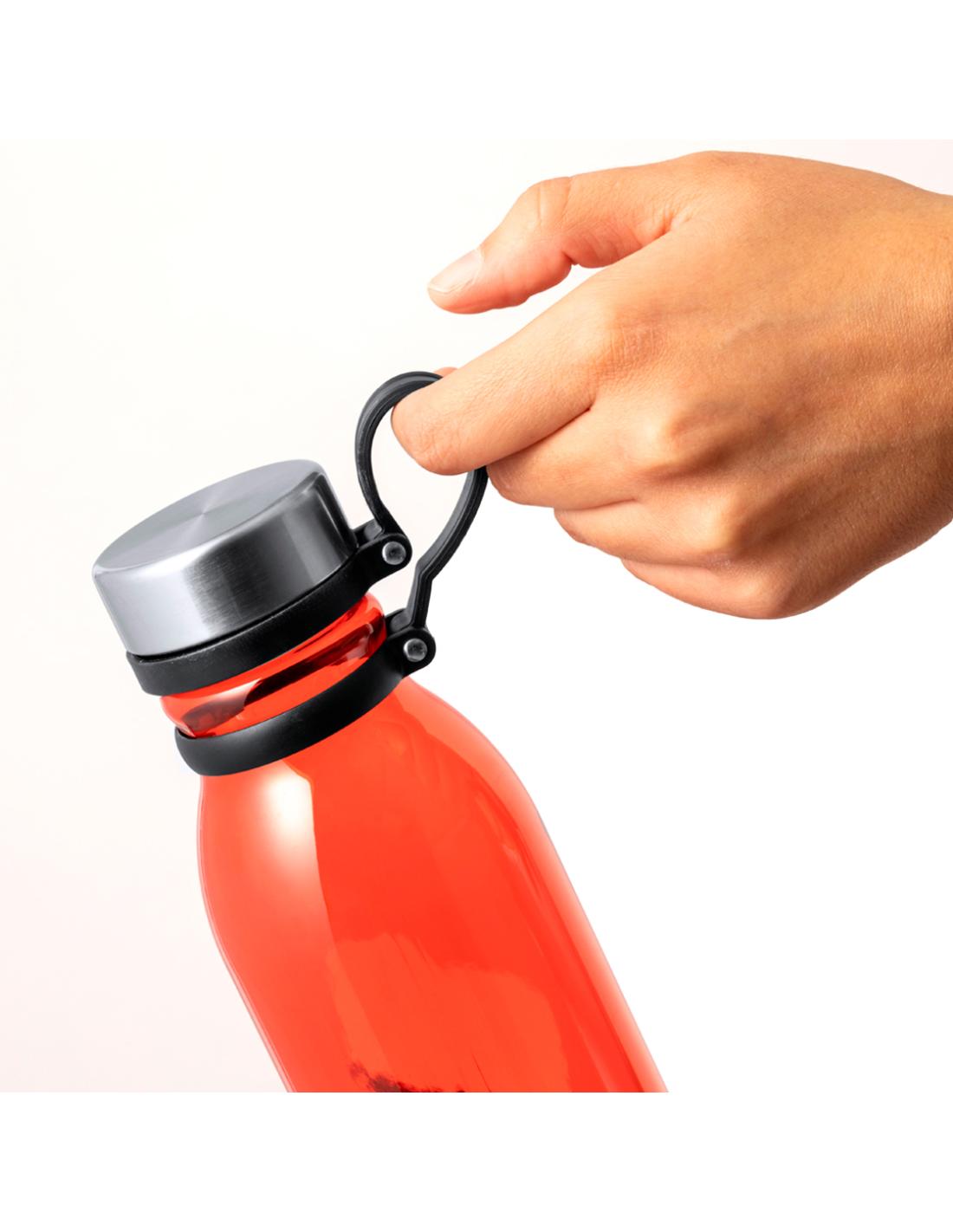 Bidón en RPET de 830 ml de capacidad. Tapón de seguridad de rosca en acero inox y original cinta de silicona para un fácil transporte. Disponible en variada gama de colores translúcidos. Libre de BPA y presentado en atractiva caja de diseño kraft. El material RPET se elabora a partir de plástico reciclado, para así fomentar la reutilización de residuos plásticos y ayudar a la sostenibilidad del planeta.