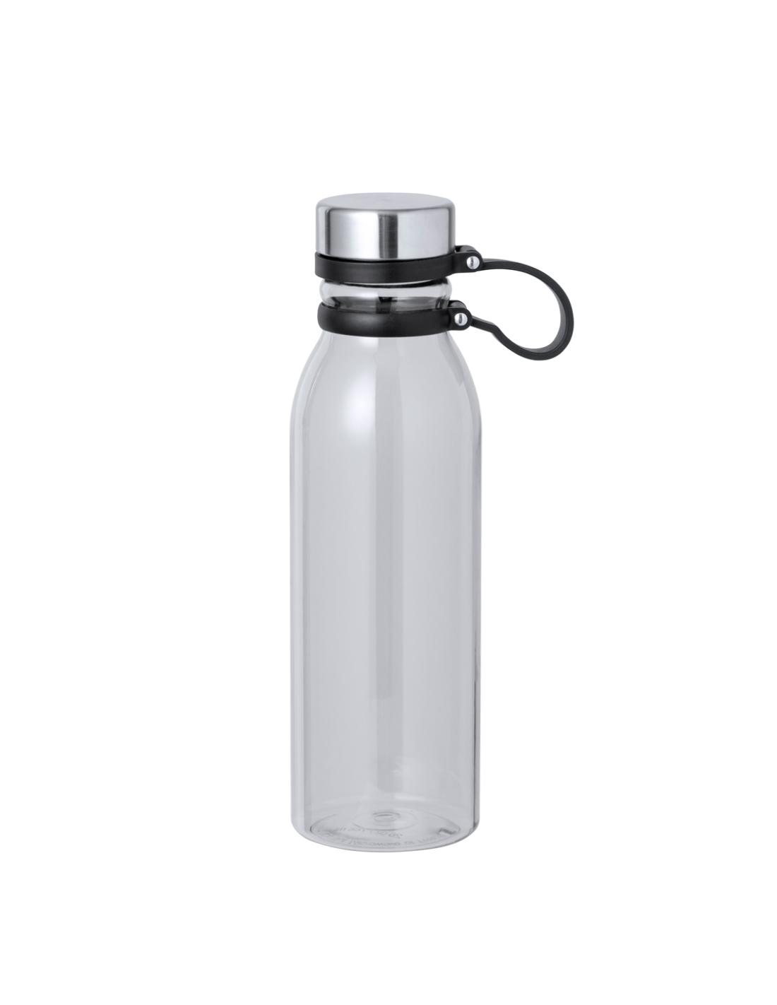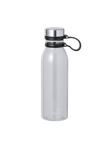 Bidón en RPET de 830 ml de capacidad. Tapón de seguridad de rosca en acero inox y original cinta de silicona para un fácil transporte. Disponible en variada gama de colores translúcidos. Libre de BPA y presentado en atractiva caja de diseño kraft. El material RPET se elabora a partir de plástico reciclado, para así fomentar la reutilización de residuos plásticos y ayudar a la sostenibilidad del planeta.