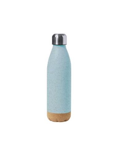 Bidón de 650 ml de capacidad, en combinación de PE veteado con base de corcho natural y tapón en acero inox.Tapón a rosca y libre de BPA. Disponible en variada gama de colores pastel mate y presentado en caja individual de diseño kraft.Certificación Food Grade, garantizando la seguridad cuando los alimentos entran en contacto con el material usado para fabricar el producto.