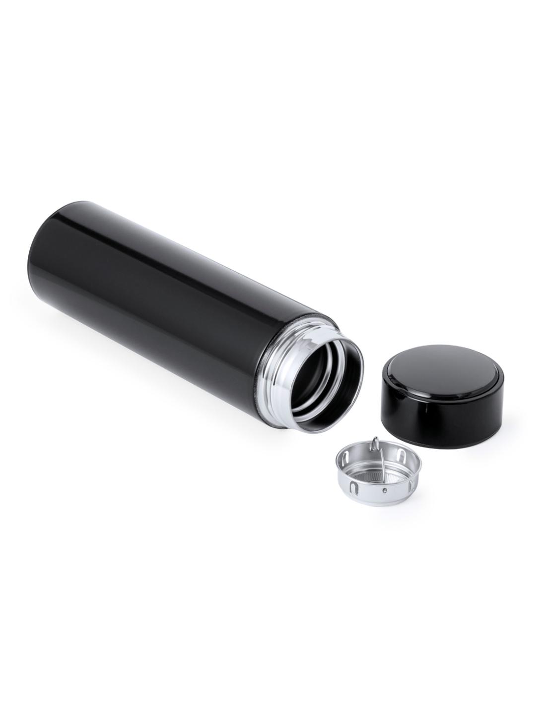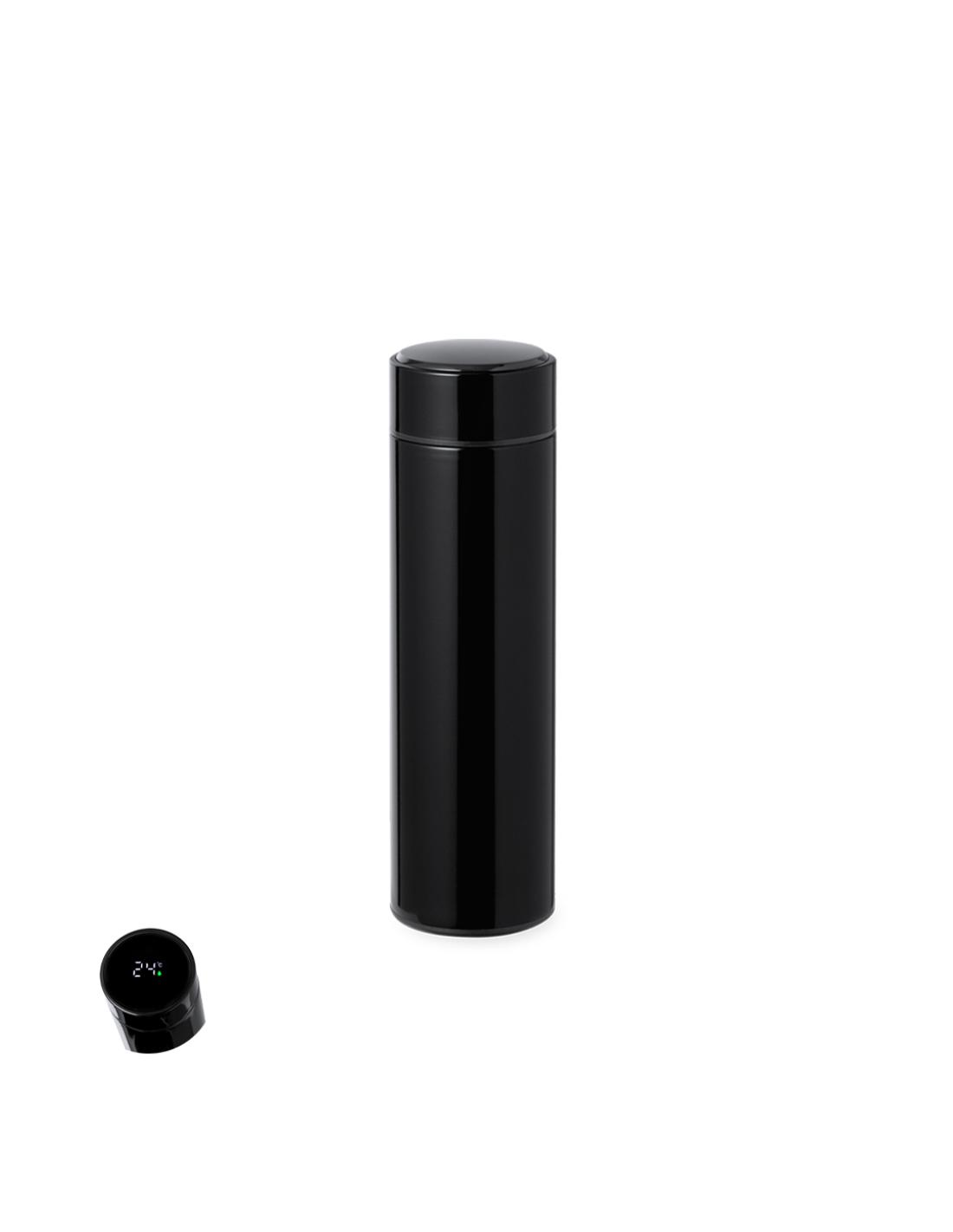 Termo en alta calidad de doble pared y 450 ml de capacidad, con medidor de temperatura táctil integrado en tapón. Fabricado en acero inox, que ofrece una resistencia y durabilidad excepcionales. Tapón en acero inox con infusor integrado y libre de BPA. Alimentación a pilas (de botón incluida), con manual de instrucciones en español e inglés. Disponible en variada gama de colores y presentado en atractiva caja de diseño kraft.