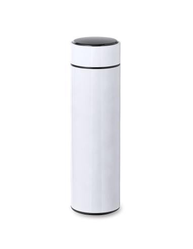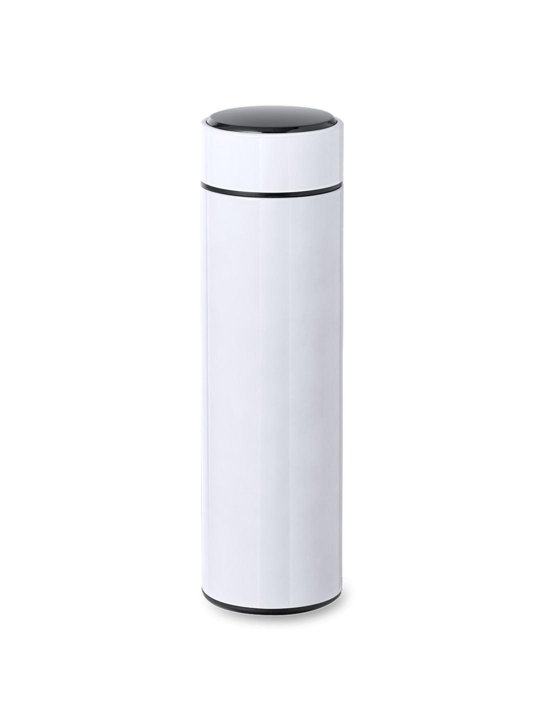 Termo en alta calidad de doble pared y 450 ml de capacidad, con medidor de temperatura táctil integrado en tapón. Fabricado en acero inox, que ofrece una resistencia y durabilidad excepcionales. Tapón en acero inox con infusor integrado y libre de BPA. Alimentación a pilas (de botón incluida), con manual de instrucciones en español e inglés. Disponible en variada gama de colores y presentado en atractiva caja de diseño kraft.
