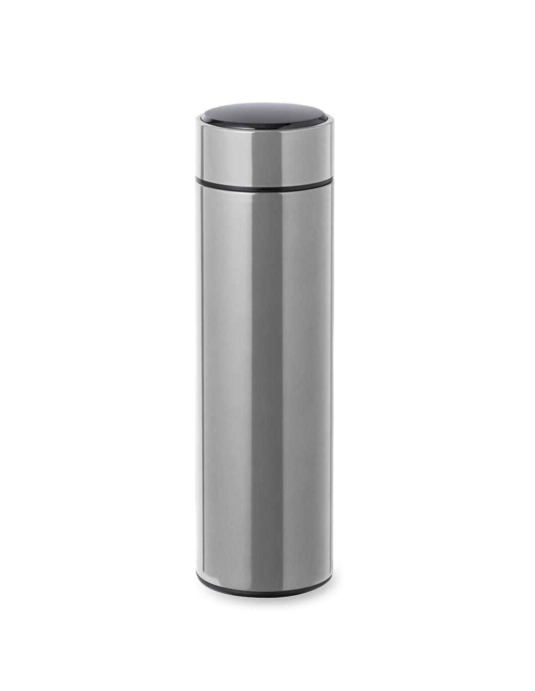 Termo en alta calidad de doble pared y 450 ml de capacidad, con medidor de temperatura táctil integrado en tapón. Fabricado en acero inox, que ofrece una resistencia y durabilidad excepcionales. Tapón en acero inox con infusor integrado y libre de BPA. Alimentación a pilas (de botón incluida), con manual de instrucciones en español e inglés. Disponible en variada gama de colores y presentado en atractiva caja de diseño kraft.