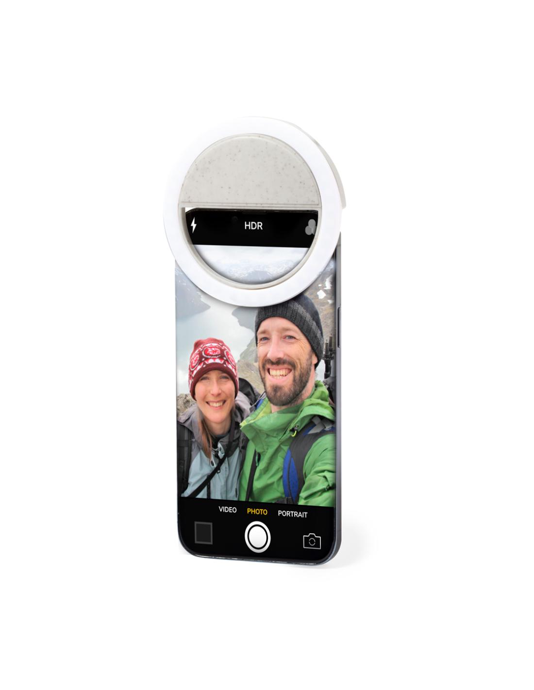 Anillo de luz LED para smartphone, fabricado en resistente caña de trigo. Ajustable a cualquier smartphone, con 36 LEDs y 3 niveles de intensidad de luz. Batería de 80 mAh y recargable por USB (cable Micro USB incluido). Presentado en atractiva caja de diseño, con manual de instrucciones disponible en español e inglés.La caña de trigo fomenta la utilización de materias primas naturales, reduciendo así las emisiones contaminantes.