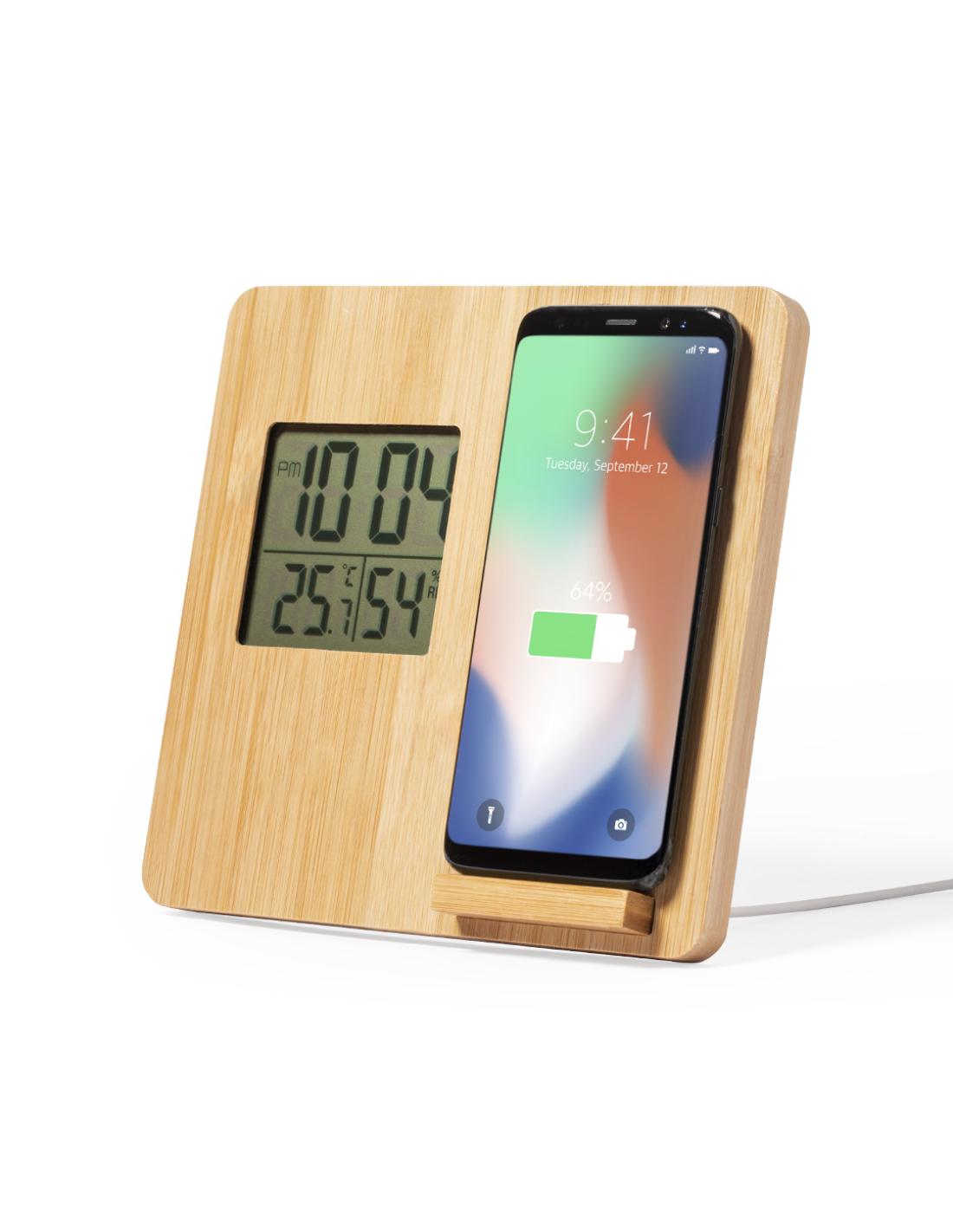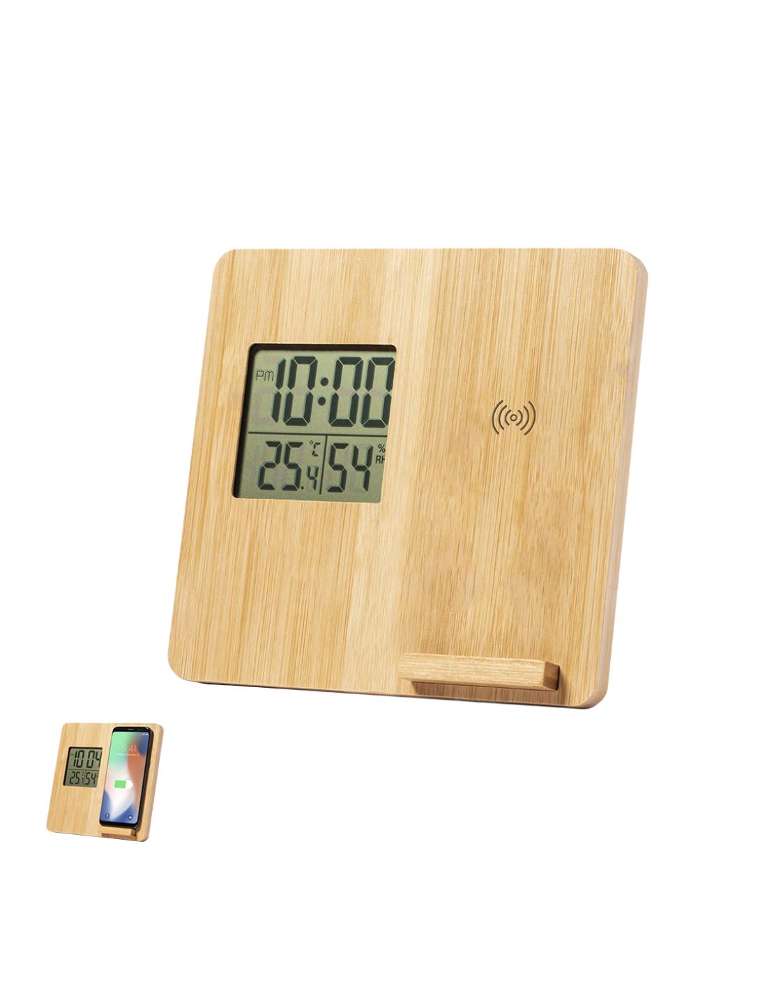 Estación meteorológica de línea nature, con cargador inalámbrico de carga 10W integrado. Fabricada en bambú pulido y con funciones termómetro e higrómetro. Incluye cable de carga Micro USB de 1m. Compatible con dispositivos equipados con tecnología de carga inalámbrica. Reloj alimentación a pilas (de botón incluida) y presentado en atractiva caja de diseño eco. Disponible manual de instrucciones en español e inglés.
