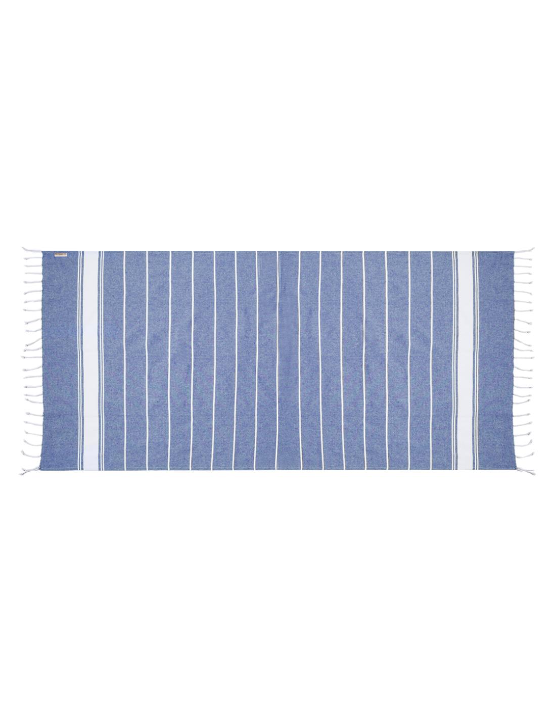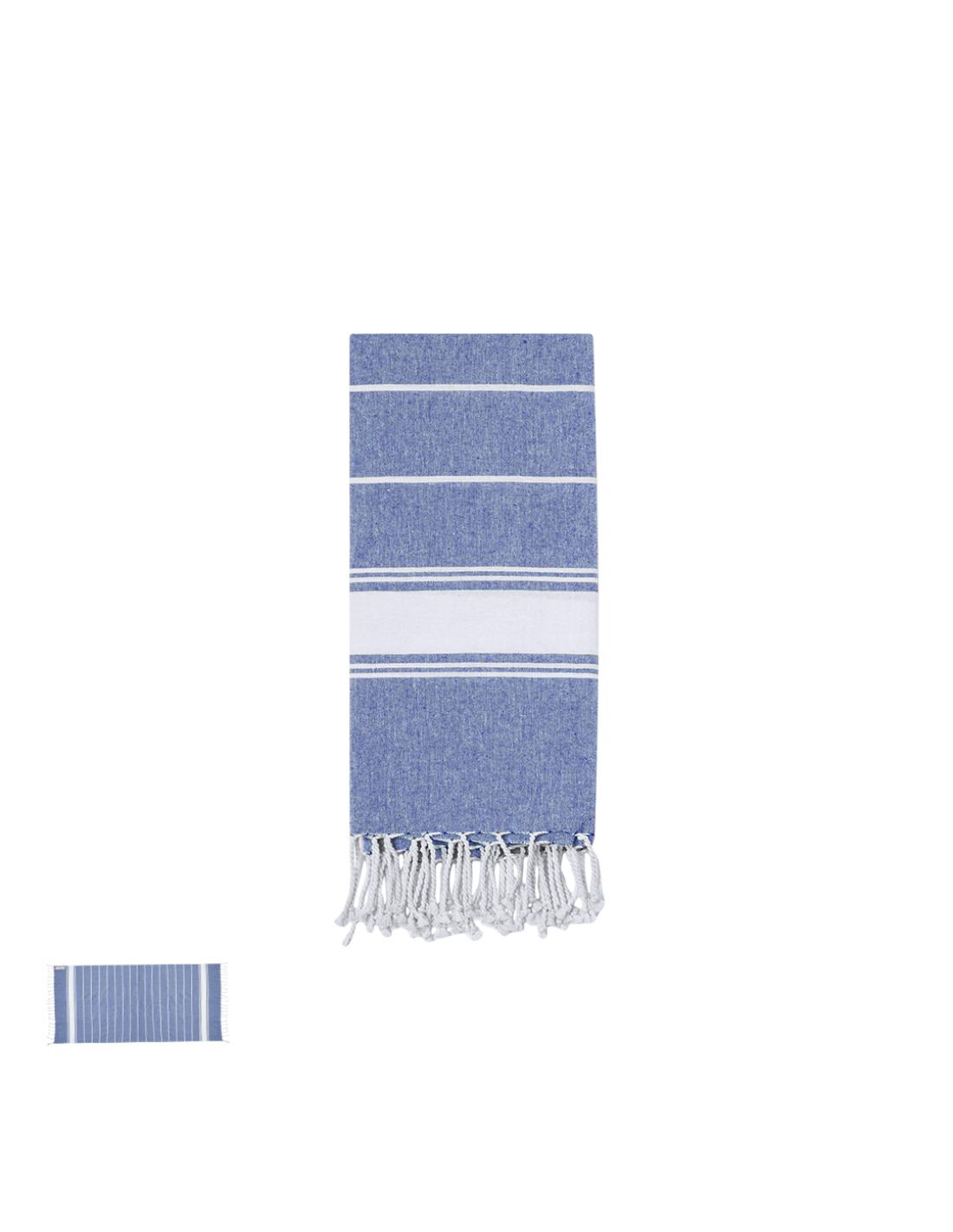 Suave pareo toalla en 100% algodón reciclado de 180g/m2. Disponible en variada gama de colores en tono bicolor. Logotipo en etiqueta lateral. Presentado individualmente en bolsa.