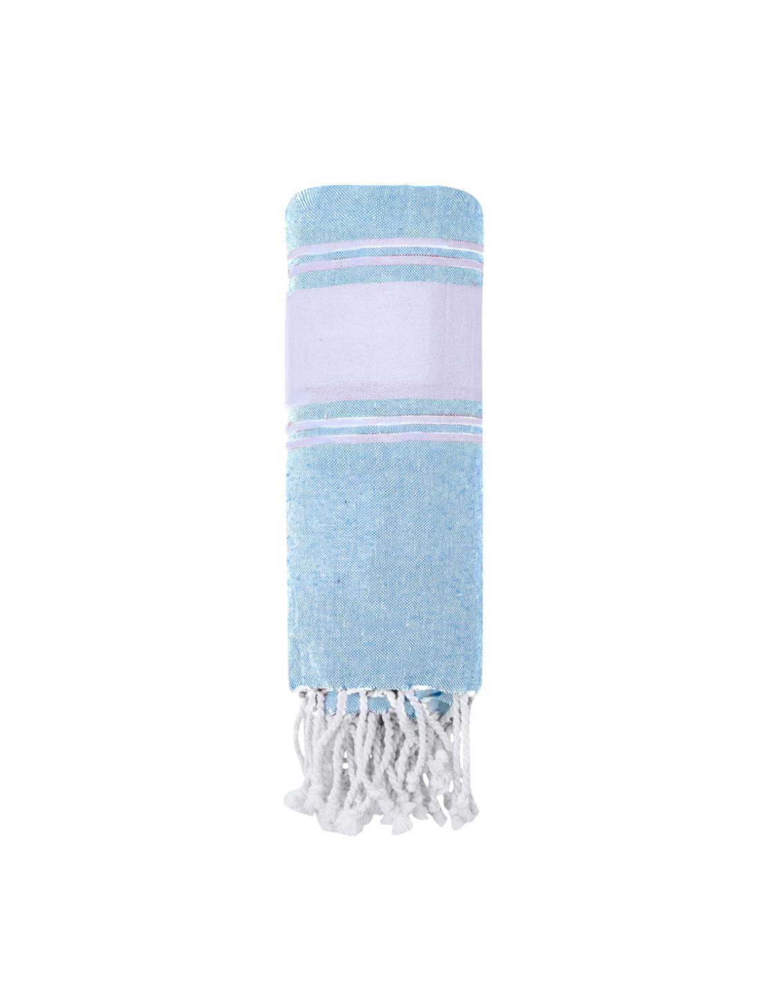 Suave pareo toalla en 100% algodón reciclado de 180g/m2. Disponible en variada gama de colores en tono bicolor. Logotipo en etiqueta lateral. Presentado individualmente en bolsa.