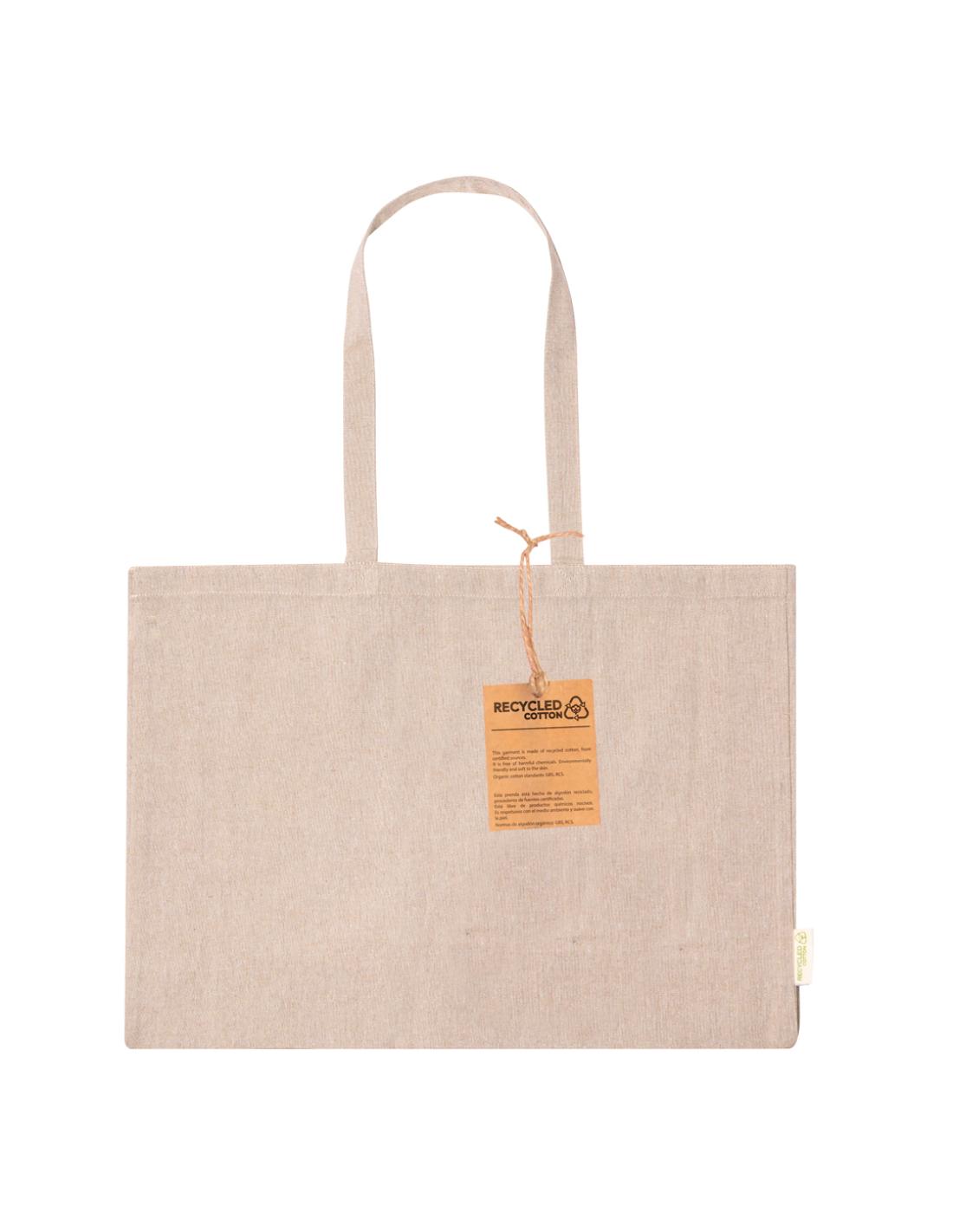 Bolsa fabricada en algodón reciclado de alto gramaje 220g/m2. De acabado cosido y con asas largas reforzadas. Con fuelle y disponible variados colores. Logotipo algodón reciclado en etiqueta exterior. Resistencia hasta 9 kg de peso.