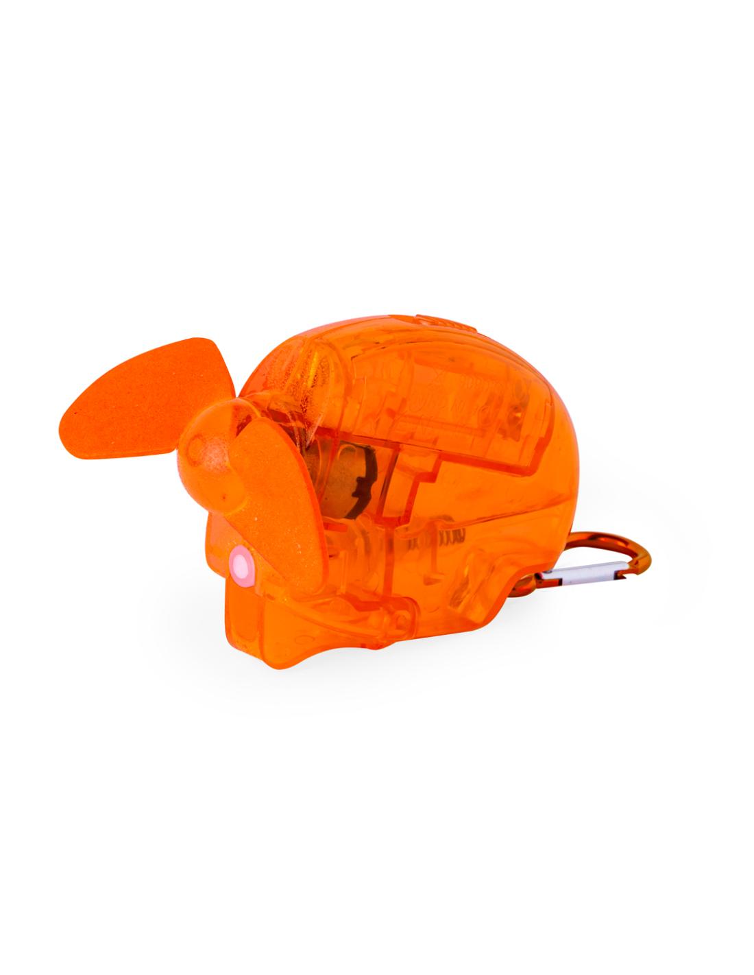 Ventilador vaporizador de 35 ml de capacidad. Presento con cuerpo translúcido y aspas de EVA. Se alimenta con 1 pilas AA (no incluidas). Disponible en colores variados, con un práctico mosquetón a juego. Presentado individualmente en caja.