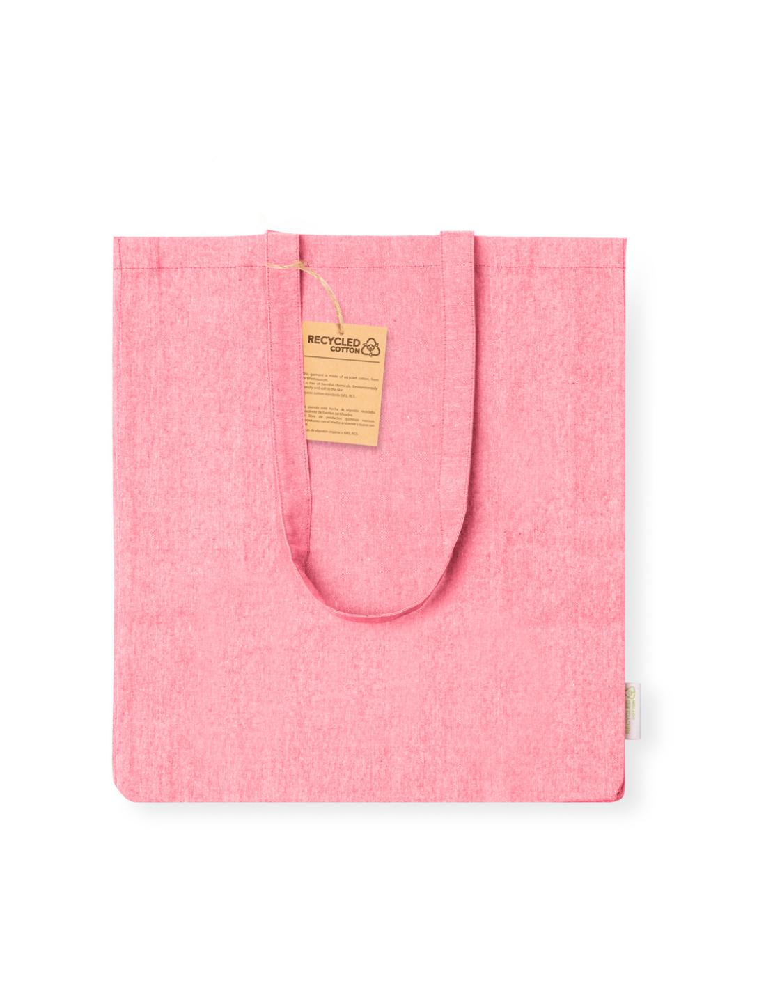 Bolsa en material 100% algodón reciclado de 140 g/m2. Asas largas de 70cm con refuerzo, de acabado cosido y fuelle. Logotipo en etiqueta lateral y resistencia hasta 8 kg de peso. Disponible en variada gama de colores nature.