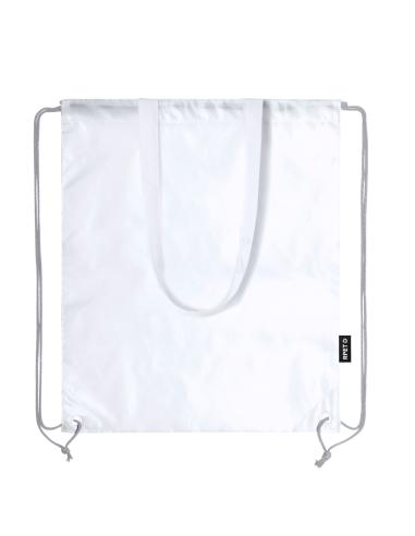 Bolsa mochila de cuerdas en resistente RPET 210T, con asas de transporte de 70 cm a juego. Las cuerdas cuentan con argollas metálicas reforzadas y logotipo RPET reciclado en etiqueta lateral. Disponible en una variada gama de colores. El material RPET se elabora a partir de plástico reciclado, para así fomentar la reutilización de residuos plásticos y ayudar a la sostenibilidad del planeta.