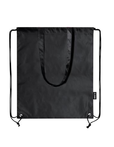 Bolsa mochila de cuerdas en resistente RPET 210T, con asas de transporte de 70 cm a juego. Las cuerdas cuentan con argollas metálicas reforzadas y logotipo RPET reciclado en etiqueta lateral. Disponible en una variada gama de colores. El material RPET se elabora a partir de plástico reciclado, para así fomentar la reutilización de residuos plásticos y ayudar a la sostenibilidad del planeta.