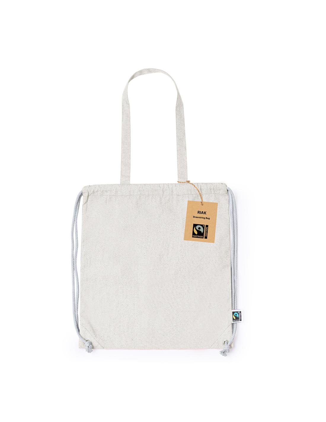 Mochila de cuerdas de línea nature, fabricada en 100% algodón de 140g/m2. Con certificación Fairtrade (Comercio Justo) un sistema comercial solidario y alternativo al convencional que persigue el desarrollo de los pueblos y la lucha contra la pobreza. De acabado cosido, cordones de algodón color natural con argollas metálicas y asas de transporte. Disponible en distintos y llamativos colores. Resistencia hasta 6kg de peso. Incluida etiqueta Fairtrade y etiqueta con logotipo en cartón reciclado.