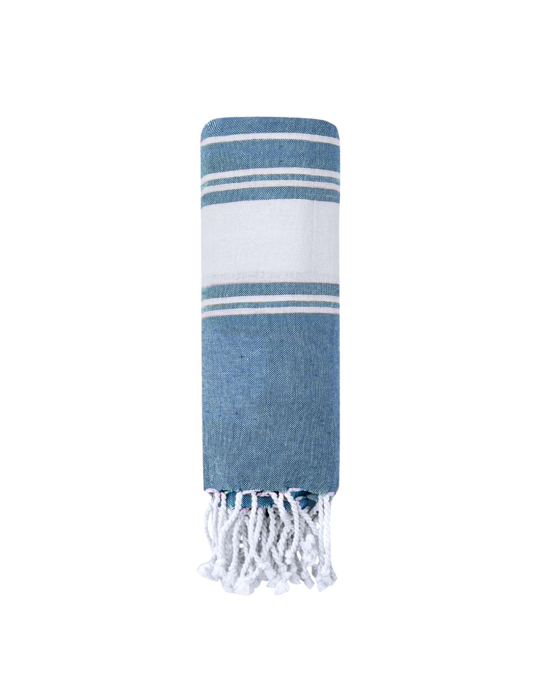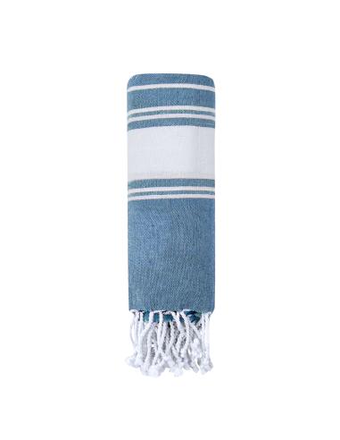 Suave pareo de toalla de 180g/m2 en combinación de algodón y poliéster. Disponible en variada gama de colores en tono bicolor. Presentado individualmente en bolsa.