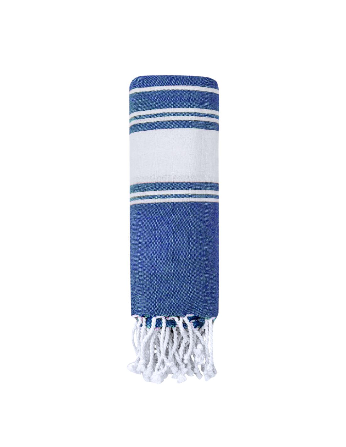 Suave pareo de toalla de 180g/m2 en combinación de algodón y poliéster. Disponible en variada gama de colores en tono bicolor. Presentado individualmente en bolsa.