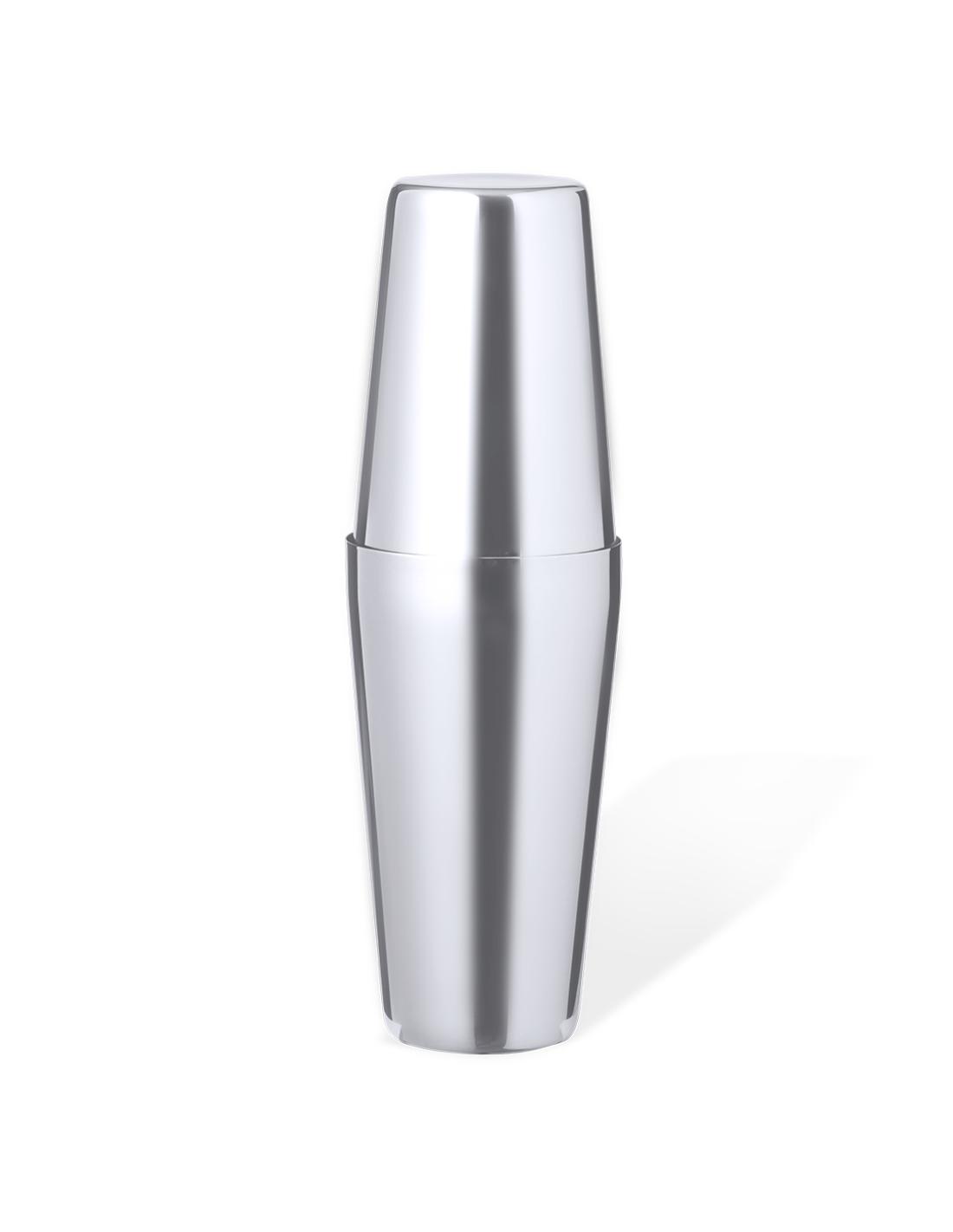 Coctelera de 500 ml fabricada en acero inox. Fabulosa coctelera compuesta de dos vasos en acero inox que encajan entre sí para un perfecto sellado, para preparar bebidas refrescantes. Presentada en caja de diseño kraft.