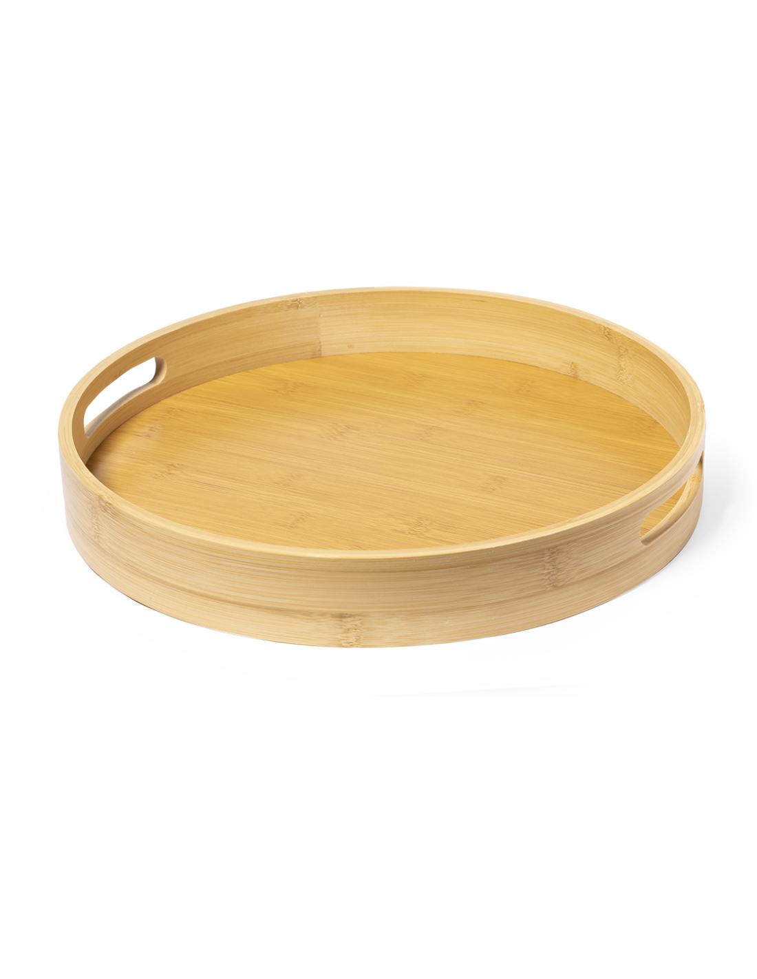 Bandeja fabricada en bambú. De diseño ecológico, fabricada en suave bambú natural para llevar bebidas cómodamente gracias a sus asas troqueladas en los bordes. Presentado en una caja de diseño kraft. Materiales como el bambú fomentan la utilización de materias primas naturales, reduciendo las emisiones contaminantes. Proviene de una planta de gran resistencia y versatilidad, con crecimiento y regeneración rápidos, siendo una excelente alternativa al uso de madera tradicional.