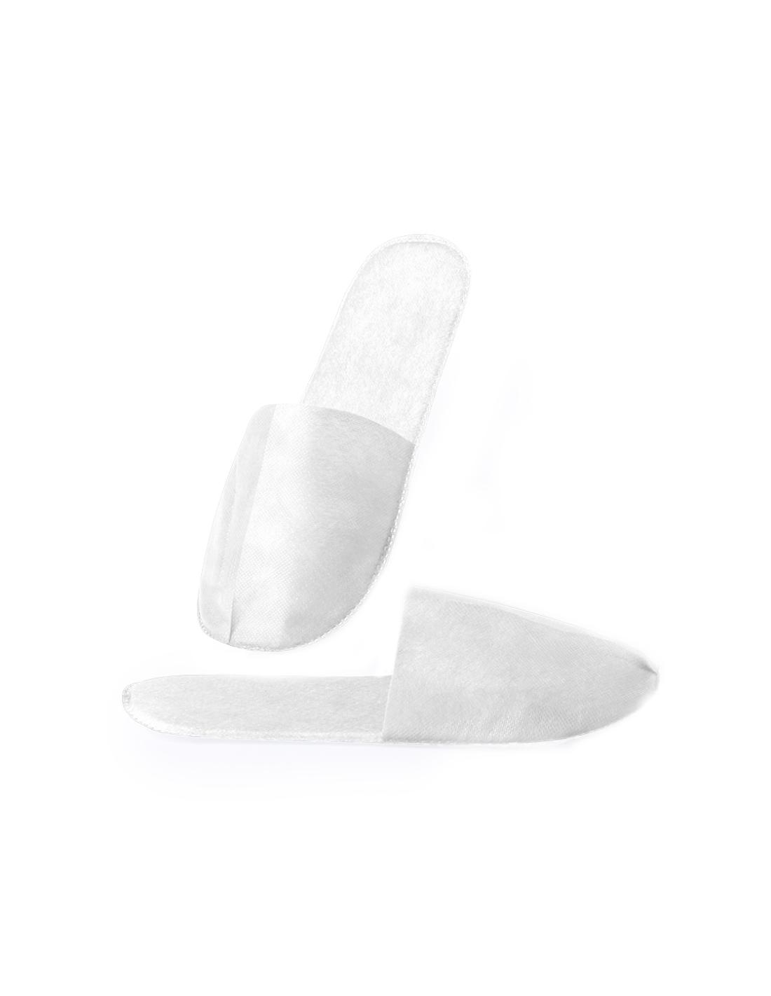 Par de zapatillas unisex fabricadas en non-woven. Confortable interior con base acolchada y pespuntes de acabado termosellado, con suela antideslizante. Talla única 36-43. Presentadas en bolsa reciclada.