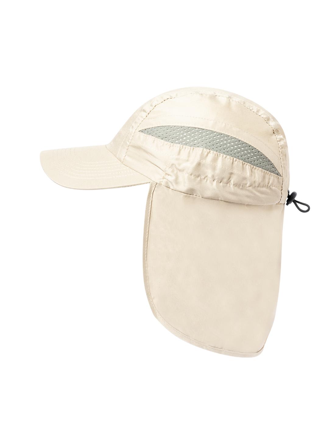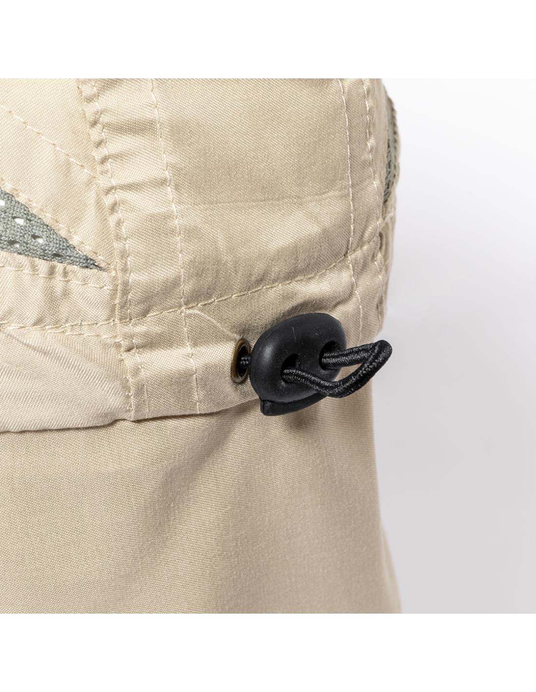 Gorra deportiva en suave microfibra de diseño bicolor en vivos colores. Cierre elástico con accesorio de ajuste y paneles de redecilla para el sudor. Además, con solapa para proteger del sol el cuello.