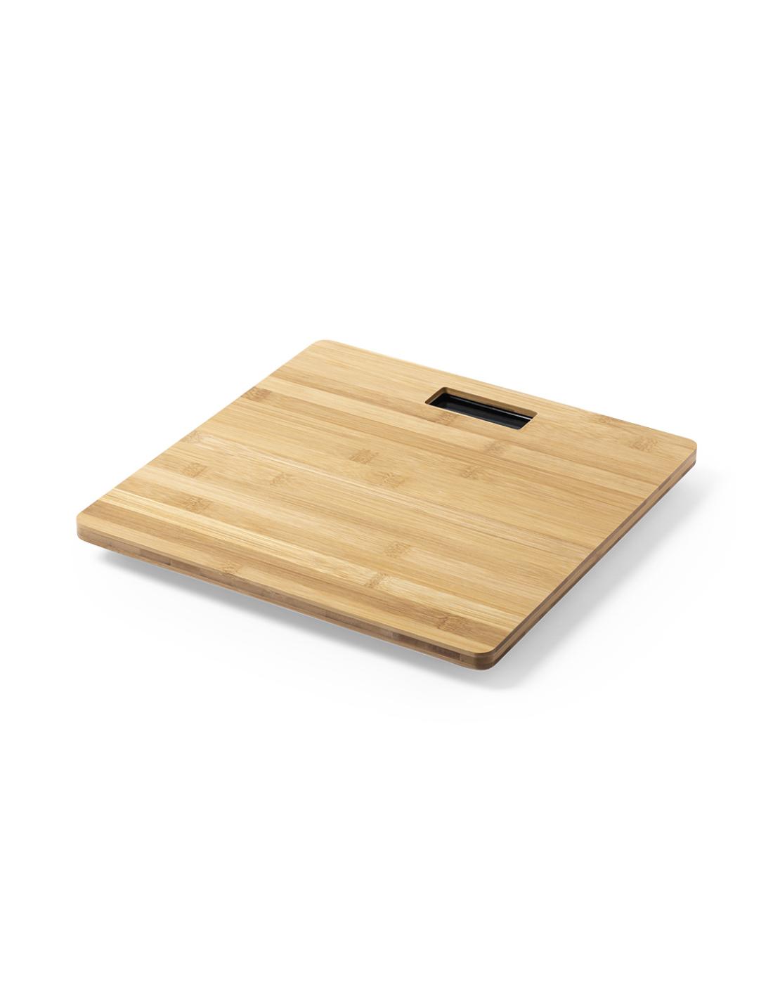 Báscula de línea nature en bambú, con base antideslizante. Display digital, con funciones de apagado automático, temperatura, tara y selección de unidad de pesaje. Alimentación a pilas (2xAAA no incluidas). Presentada en atractiva caja de diseño eco.