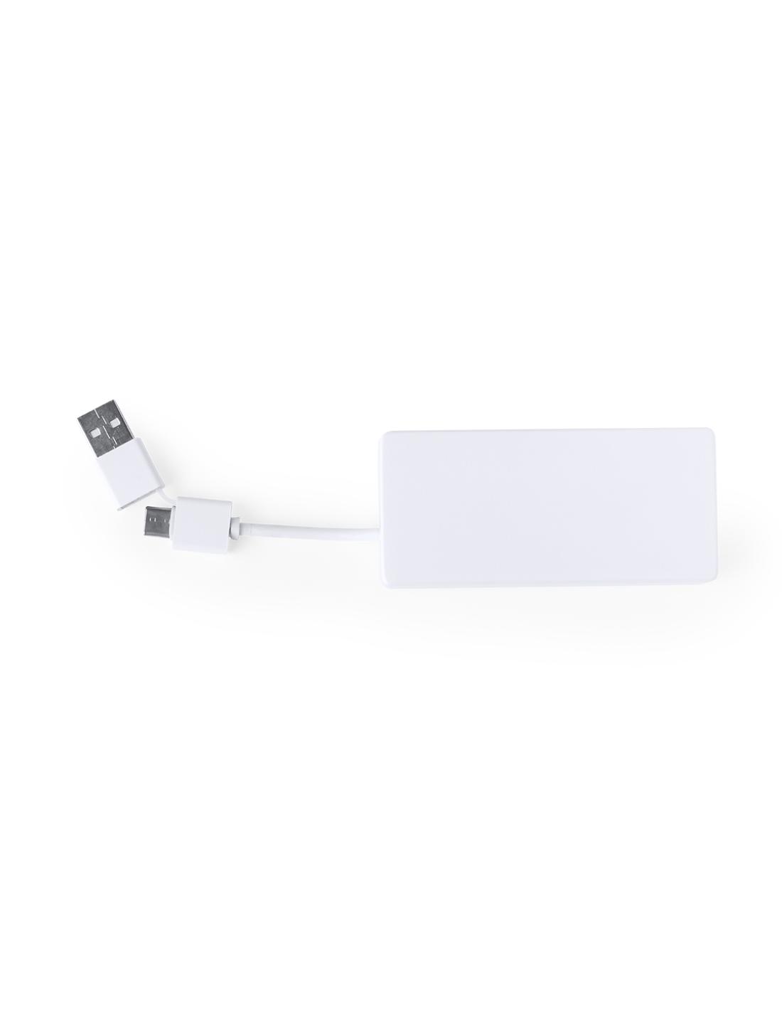 Puerto USB 2.0 fabricado en resistente RABS de acabado en color blanco. Incluye puerto Tipo C y 2 puertos USB, con entrada dual USB/Tipo C. De diseño compacto y con ranura en la parte posterior del dispositivo para almacenar el cable. Presentado en caja individual de diseño kraft.El RABS es un plástico altamente reciclable de gran resistencia y con multitud de aplicaciones que lo convierten en una solución eco-friendly. Con certificación RCS, que garantiza el origen reciclado del mismo.