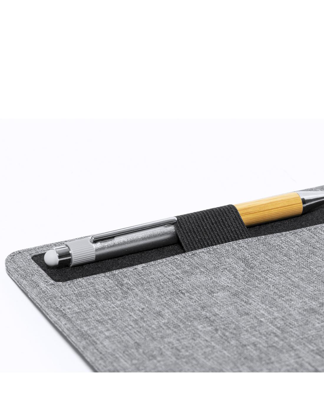 Elegante y funcional afombrilla fabricada en suave poliéster RPET. Con entrada Tipo C -cable negro Tipo C incluido- y cargador inalámbrico de 15W, compatible con dispositivos equipados con tecnología de carga inalámbrica Qi. Incluye soporte para smartphone y soporte para bolígrafos. Con base antideslizante que garantiza estabilidad y comodidad de uso. Incluye manual de instrucciones en español e inglés. Presentada en caja individual de diseño kraft y en bolsa reciclada.El material RPET se elabora a partir de plástico reciclado, para así fomentar la reutilización de residuos plásticos y ayudar a la sostenibilidad del planeta.Fabricado conforme a los estándares RoHS y en cumplimiento con los siguientes requisitos de seguridad:Sistema de protección contra sobrecalentamiento.Sistema de protección contra sobrecarga.Sistema...