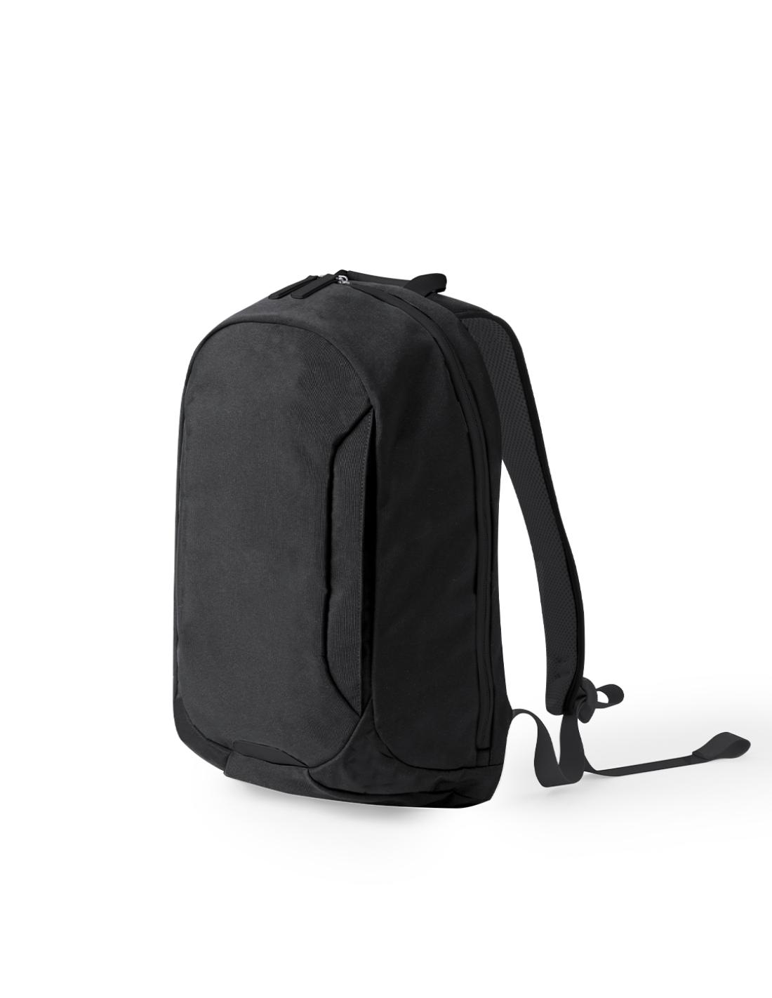 Mochila fabricada en resistente poliéster, dotada de cierre de cremallera de doble tirador y un bolsillo frontal. En su interior, dispone de compartimento acolchado para portátil hasta 15 pulgadas y compartimento para tablet de hasta 10 pulgadas. En el exterior, cuenta con un bolsillo frontal de acceso rápido y otro oculto en la espalda acolchada para guardar objetos de valor, incorporando una cinta para fijarla a las maletas. Sus esquinas reforzadas aportan durabilidad, e incluye asa de transporte, con elegantes accesorios en tono negro. Las cintas de hombros y la espalda son acolchadas y ajustables para mayor comodidad. Presentado en una bolsa individual reciclada.