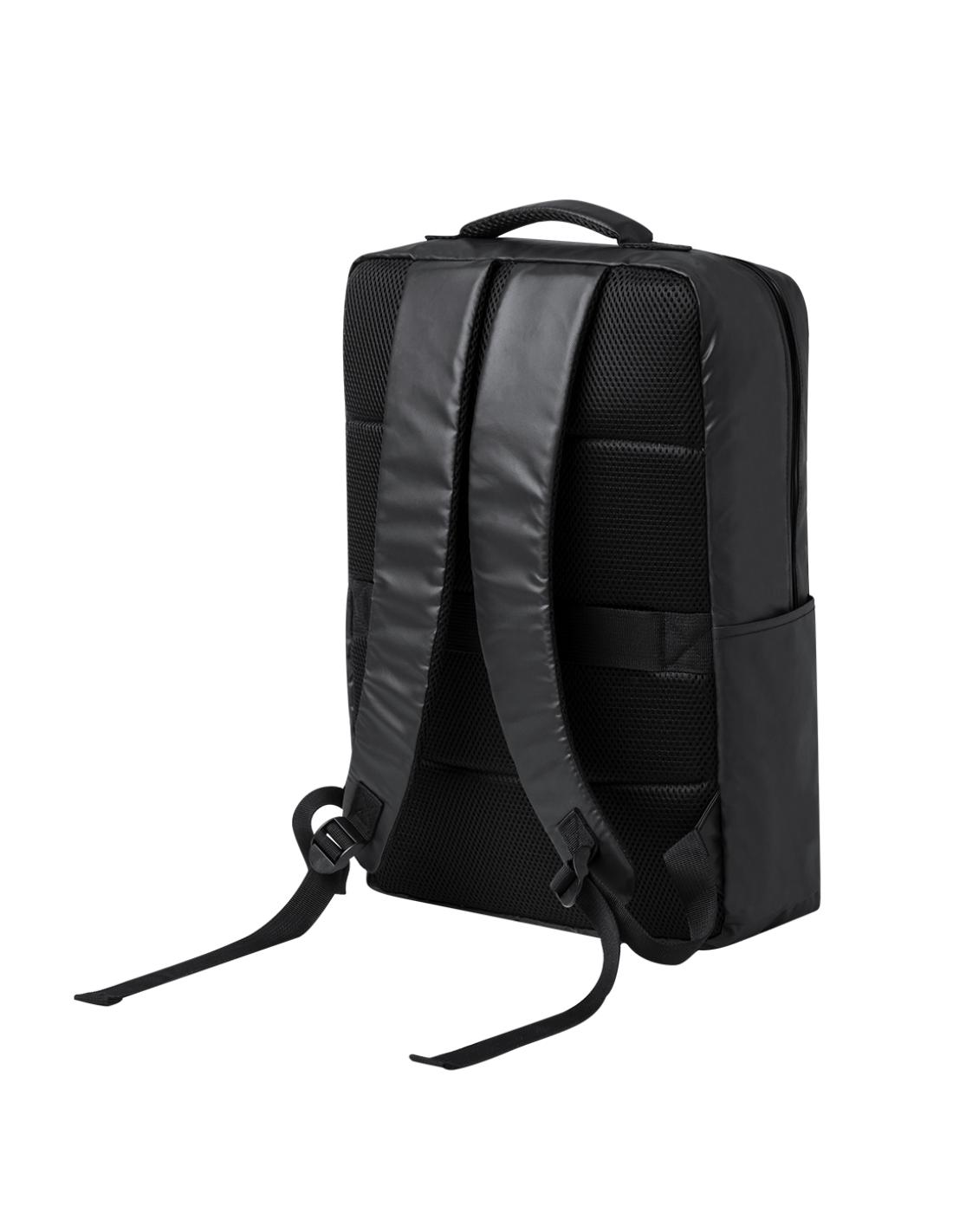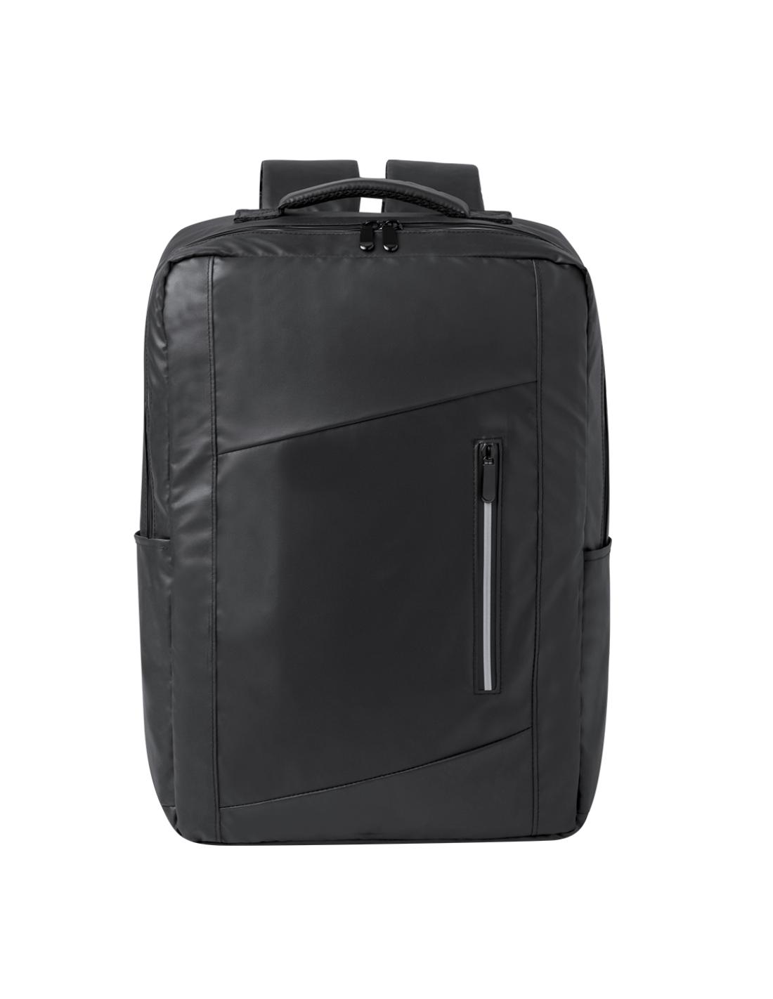 Mochila confeccionada en elegante polipiel. Caracterizada por un diseño urbano que incorpora un bolsillo acolchado para tablet de hasta 10 pulgadas y portátil de hasta 15 pulgadas. Además, cuenta con un bolsillo frontal destacado por una banda reflectante. Espalda y cintas de hombros acolchadas, ajustables y fabricadas con tela transpirable en la parte interior. Incluye un accesorio de ajuste para trolley y una cómoda asa superior acolchada. Presentado en una bolsa individual reciclada.