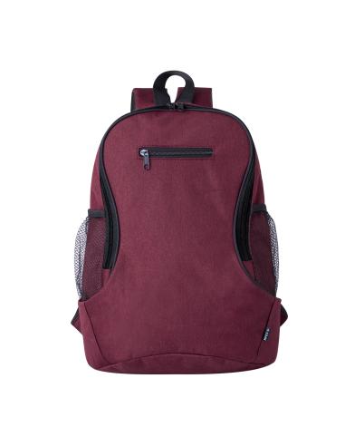Mochila en resistente 300D RPET. Bolsillo principal y bolsillo frontal con cierre de cremallera. Cintas acolchadas ajustables para hombro y bolsillos de rejilla laterales. Logotipo RPET en etiqueta exterior. Disponible en variada gama de colores con accesorios en negro y embolsada individualmente en bolsa reciclada. El material RPET se elabora a partir de plástico reciclado, para así fomentar la reutilización de residuos plásticos y ayudar a la sostenibilidad del planeta.