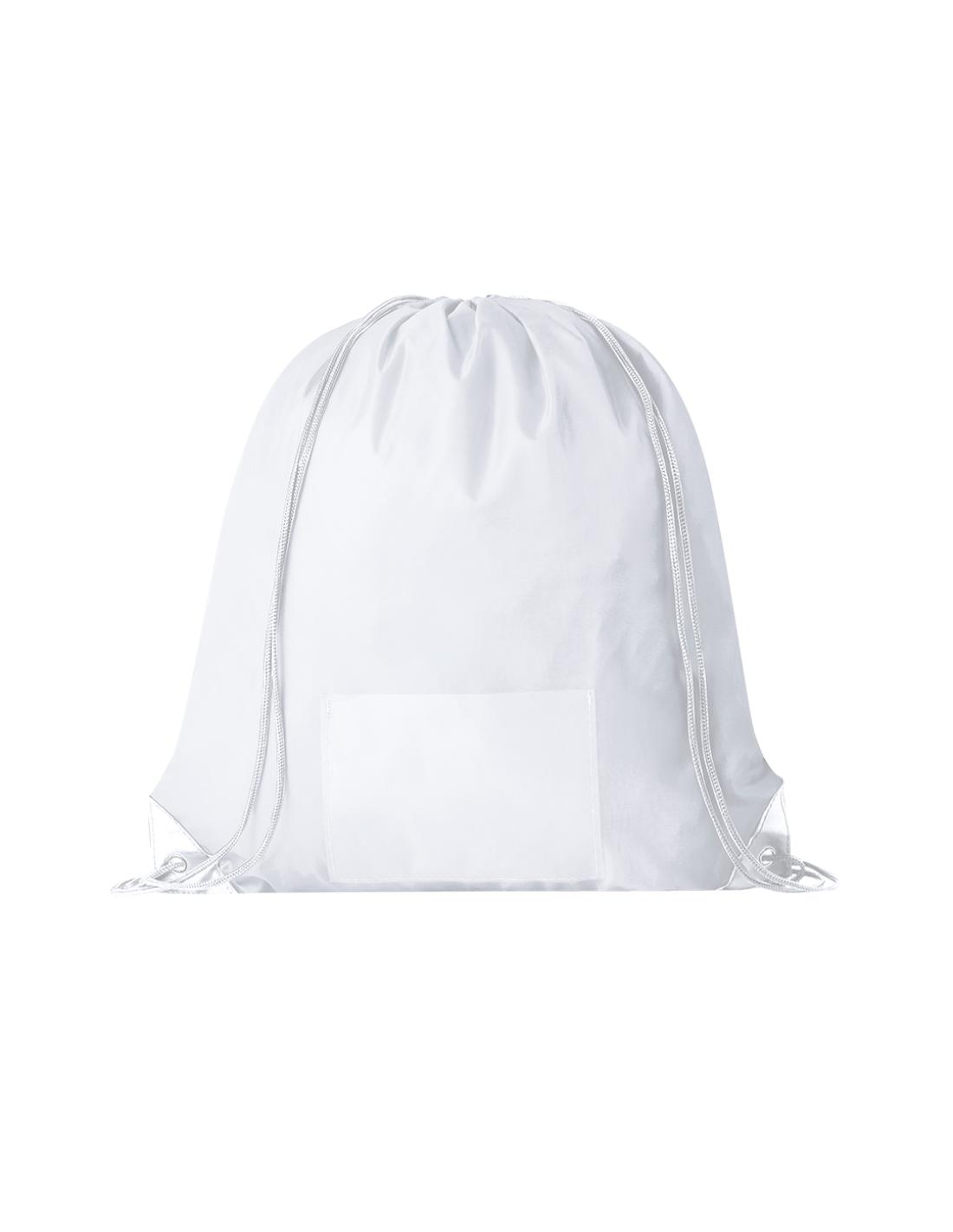 Mochila de cuerdas confeccionada en suave poliéster 210D. Posee cuerdas de autocierre, esquinas reforzadas en negro y argollas metálicas de refuerzo. Cuenta con un bolsillo frontal portadorsal y está disponible en una variada gama de colores (color blanco especialmente fabricado para marcaje en sublimación).