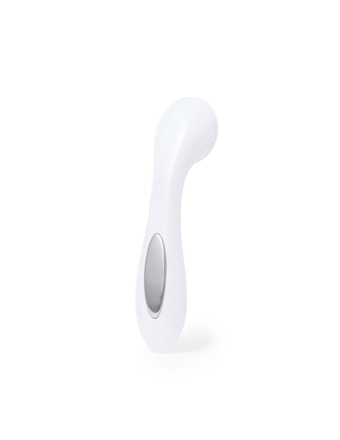 Limpiador facial eléctrico. Eficaz instrumento de belleza para limpiar en profundidad la piel del rostro mediante la vibración, provocando placentero masaje con su base plana y ayudando a abrir los poros para una mejor higienización. Con posibilidad de escoger entre corrientes positivas o negativas, funciona con pila de botón (incluida). Presentado en una caja de diseño kraft.