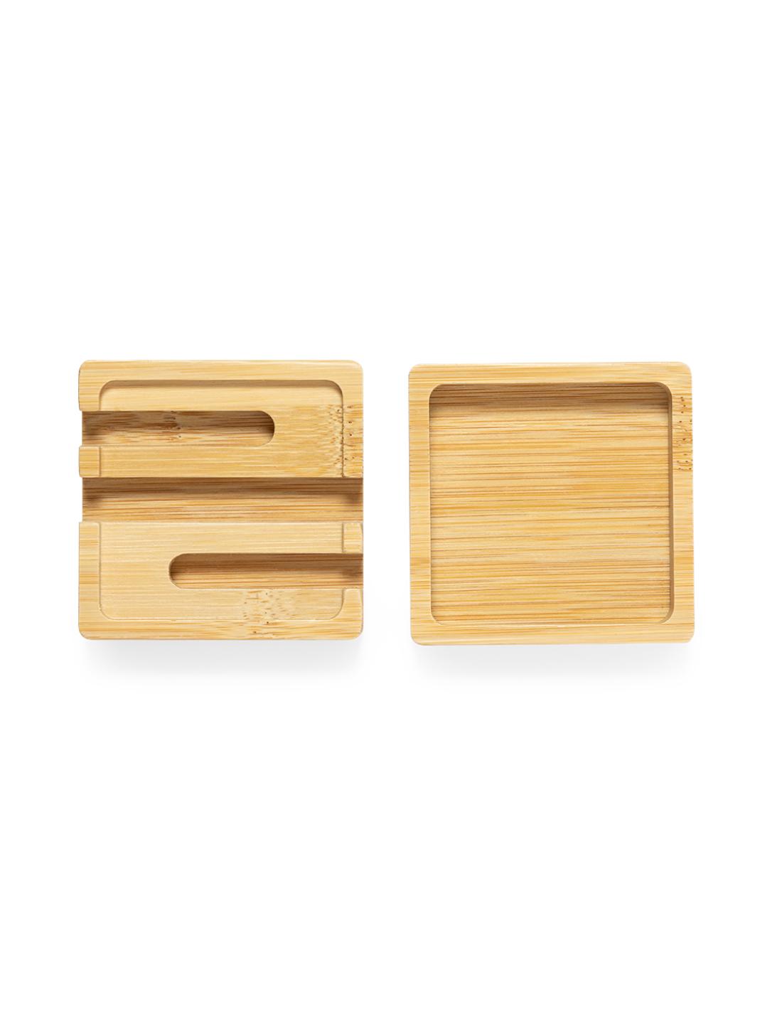 Práctico organizador de mesa fabricado en bambú, aportando un estilo moderno y funcional a la mesa. Con práctica base para guardar objetos como clips o notas adhesivas, y parte superior con tarjetero y soporte para dispositivos móviles. Presentado en una caja de diseño kraft. Materiales como el bambú fomentan la utilización de materias primas naturales, reduciendo las emisiones contaminantes. Proviene de una planta de gran resistencia y versatilidad, con crecimiento y regeneración rápidos, siendo una excelente alternativa al uso de madera tradicional.