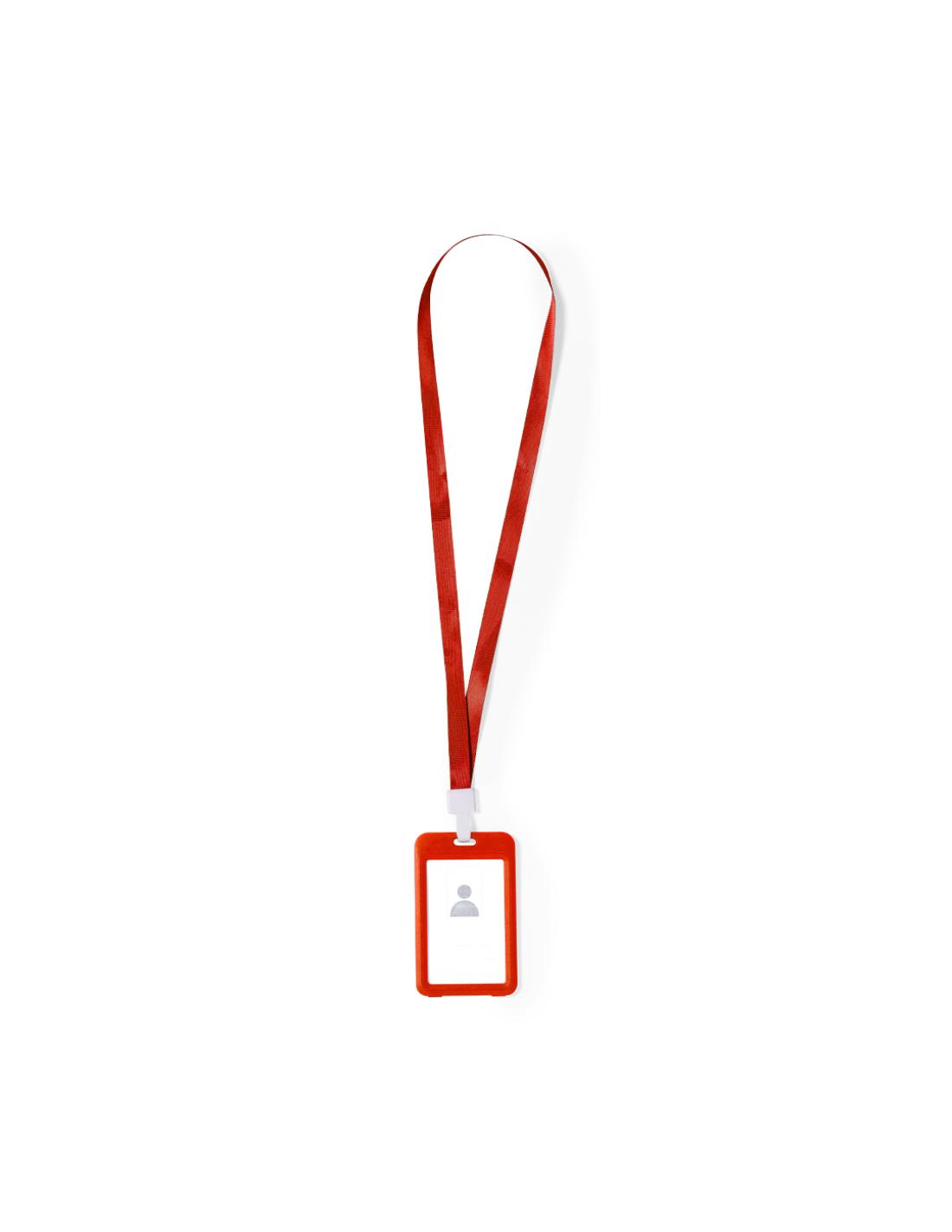 Identificador lanyard fabricado en suave poliéster. Portatarjetas con ventanilla de PVC y mosquetón en resistente plástico. Disponible en variada gama de colores.