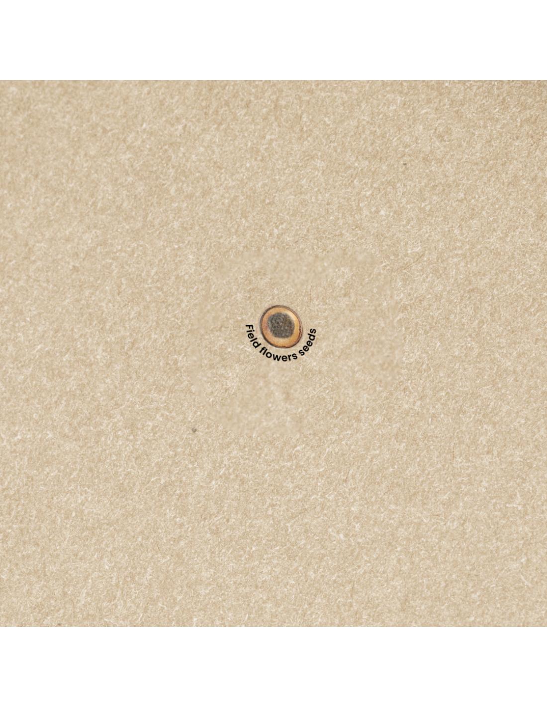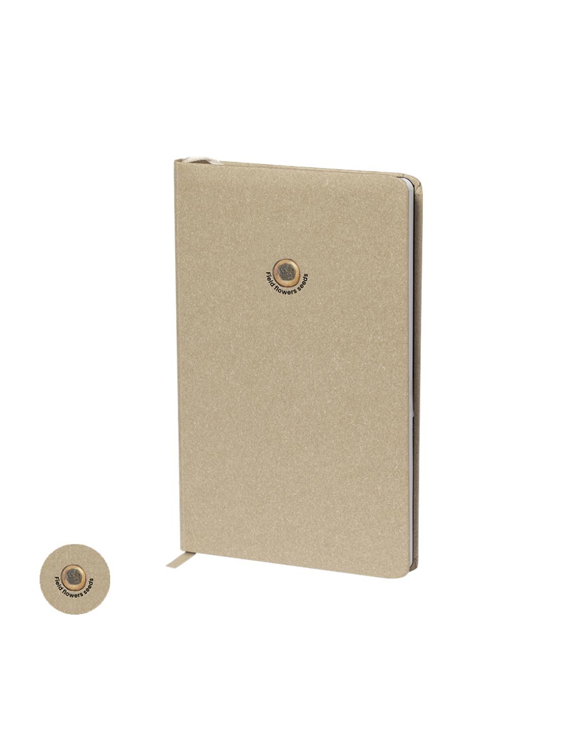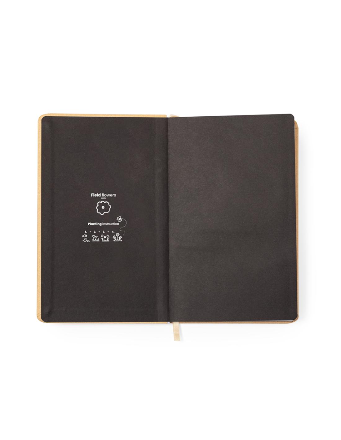 Bloc de notas de semillas fabricado en resistente cartón reciclado. Con tapas rígidas, marcapáginas y 80 hojas interiores con disposición a una raya en papel reciclado. Además, en la portada contiene una cápsula con semillas de flores silvestres, en colores surtidos y con instrucciones de plantado en la cubierta trasera.El cartón reciclado proviene del reaprovechamiento de excedente de fabricaciones y reciclaje de papel en el final de su vida útil, convirtiéndose en un lienzo ecológico y sostenible.