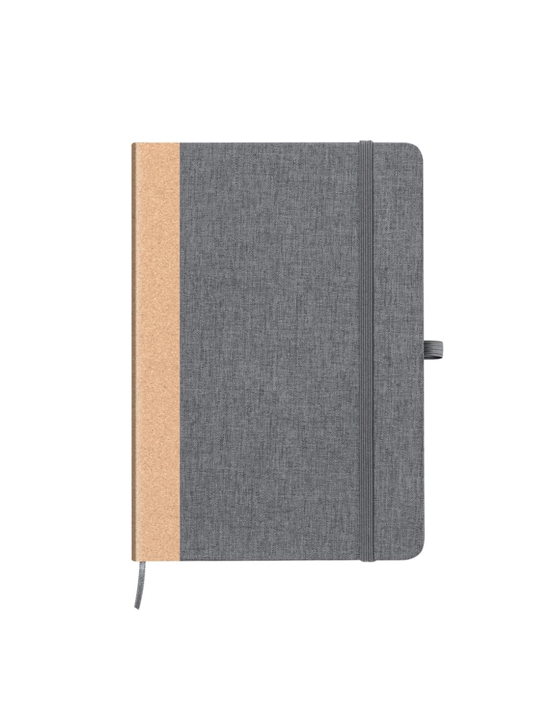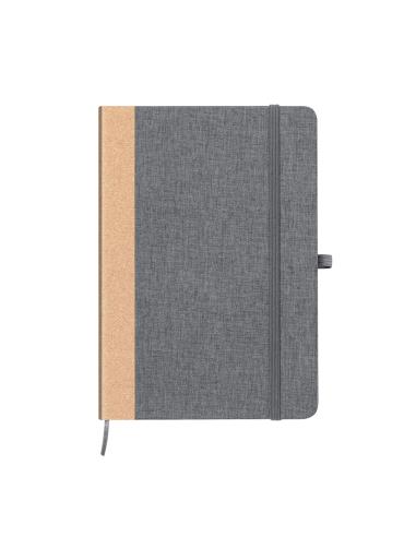 Bloc de notas con tapas rígidas fabricadas en RPET, con el lomo en corcho. Incluye interior con 80 hojas lisas, marcapáginas, elástico de cierre y soporte para bolígrafo a juego. logotipo RPET en contraportada y disponible en elegantes colores. Presentado en una bolsa individual de papel reciclado.El material RPET se elabora a partir de plástico reciclado, para así fomentar la reutilización de residuos plásticos y ayudar a la sostenibilidad del planeta.