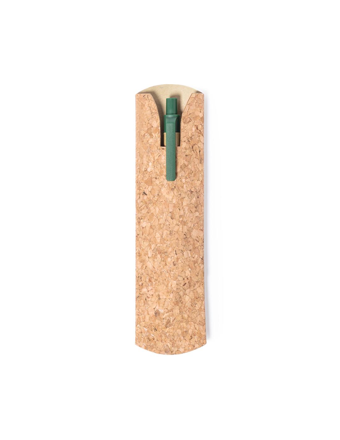 Funda de bolígrafo de línea nature. Fabricada en corcho natural y con amplia superficie de marcaje, especialmente diseñada para mostrar la publicidad del clip del bolígrafo.