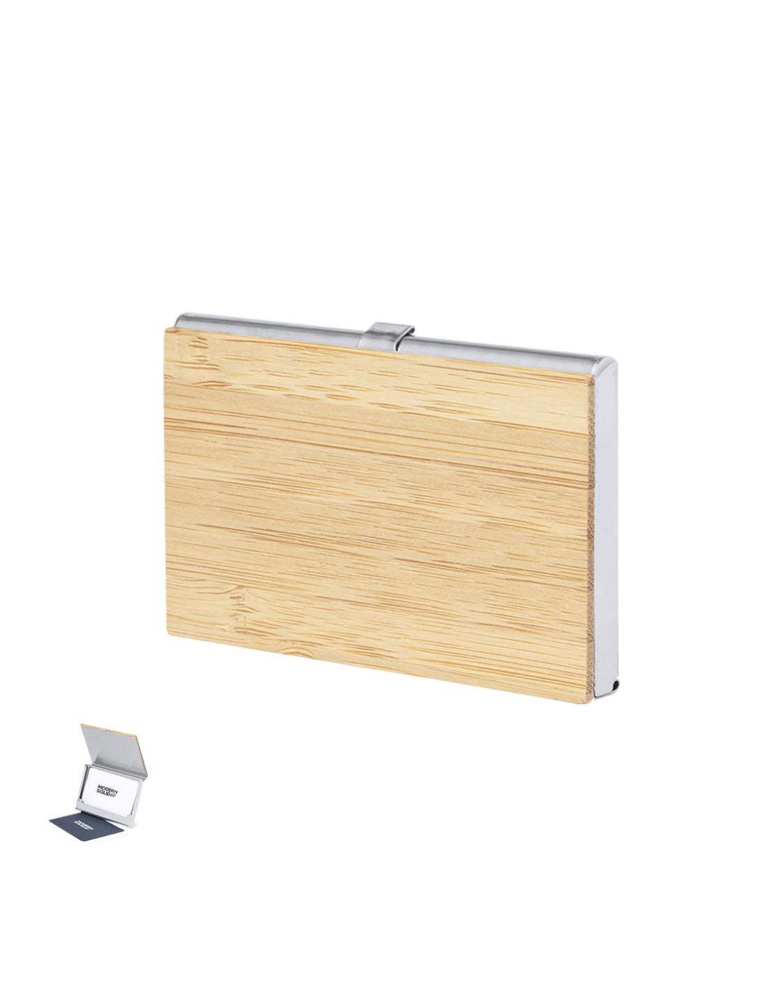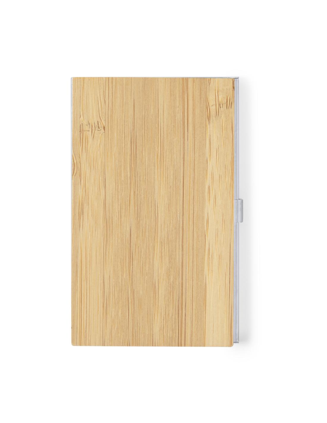 Elegante tarjetero fabricado en suave bambú, con tapas duras y cierre de presión. Destaca el detalle de bambú en la parte frontal y cuenta con un compartimento interior para almacenar tarjetas. Presentado en una bolsa individual de papel reciclado.Materiales como el bambú fomentan la utilización de materias primas naturales, reduciendo las emisiones contaminantes. Proviene de una planta de gran resistencia y versatilidad, con crecimiento y regeneración rápidos, siendo una excelente alternativa al uso de madera tradicional.
