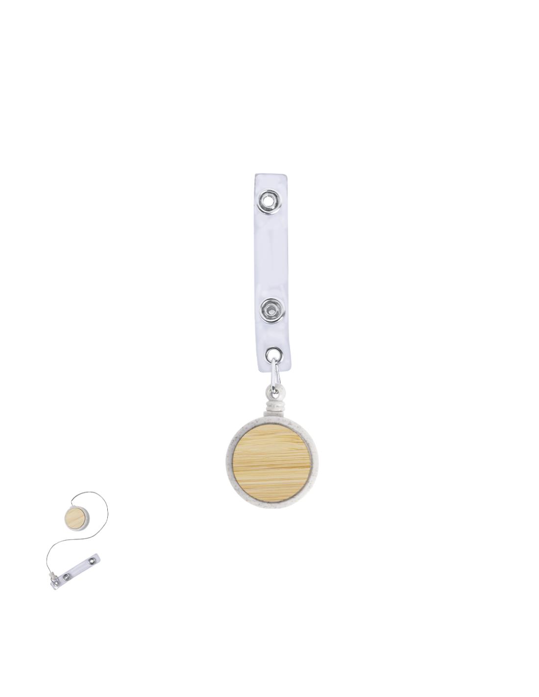 Portacreditaciones extensible fabricado en bambú y caña de trigo. Con cinta de fijación de cierre de botón y mecanismo extensible de hasta 70 cm. Incluye clip trasero metálico de enganche. Con amplia superficie de marcaje en la pieza central de bambú. Presentado individualmente en bolsa reciclada. Materiales como el bambú fomentan la utilización de materias primas naturales, reduciendo las emisiones contaminantes. Proviene de una planta de gran resistencia y versatilidad, con crecimiento y regeneración rápidos, siendo una excelente alternativa al uso de madera tradicional.