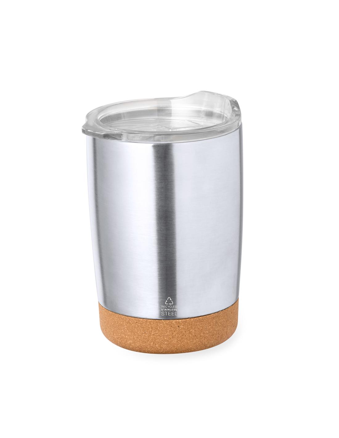 Vaso fabricado en acero inox reciclado en 350 ml de capacidad. Combinación de base en corcho natural con cuerpo en acero inox reciclado de acabado plata. Con doble pared para mejor y más duradera conservación de la temperatura. Original tapón dosificador transparente de fácil apertura, y logotipo Acero Inox Reciclado. Es ideal para tener en tu escritorio, mesa o en cualquier superficie donde disfrutar tranquilamente de tu bebida favorita.El acero es uno de los materiales más demandados y que puede encontrarse casi en todas partes, desde productos de uso diario a grandes construcciones. Con innumerables propiedades, entre las que cabe destacar la durabilidad y su alto grado de reutilización, convirtiéndolo en una alternativa muy valorada en soluciones de sostenibilidad. Debidamente tratado, permite obtener...