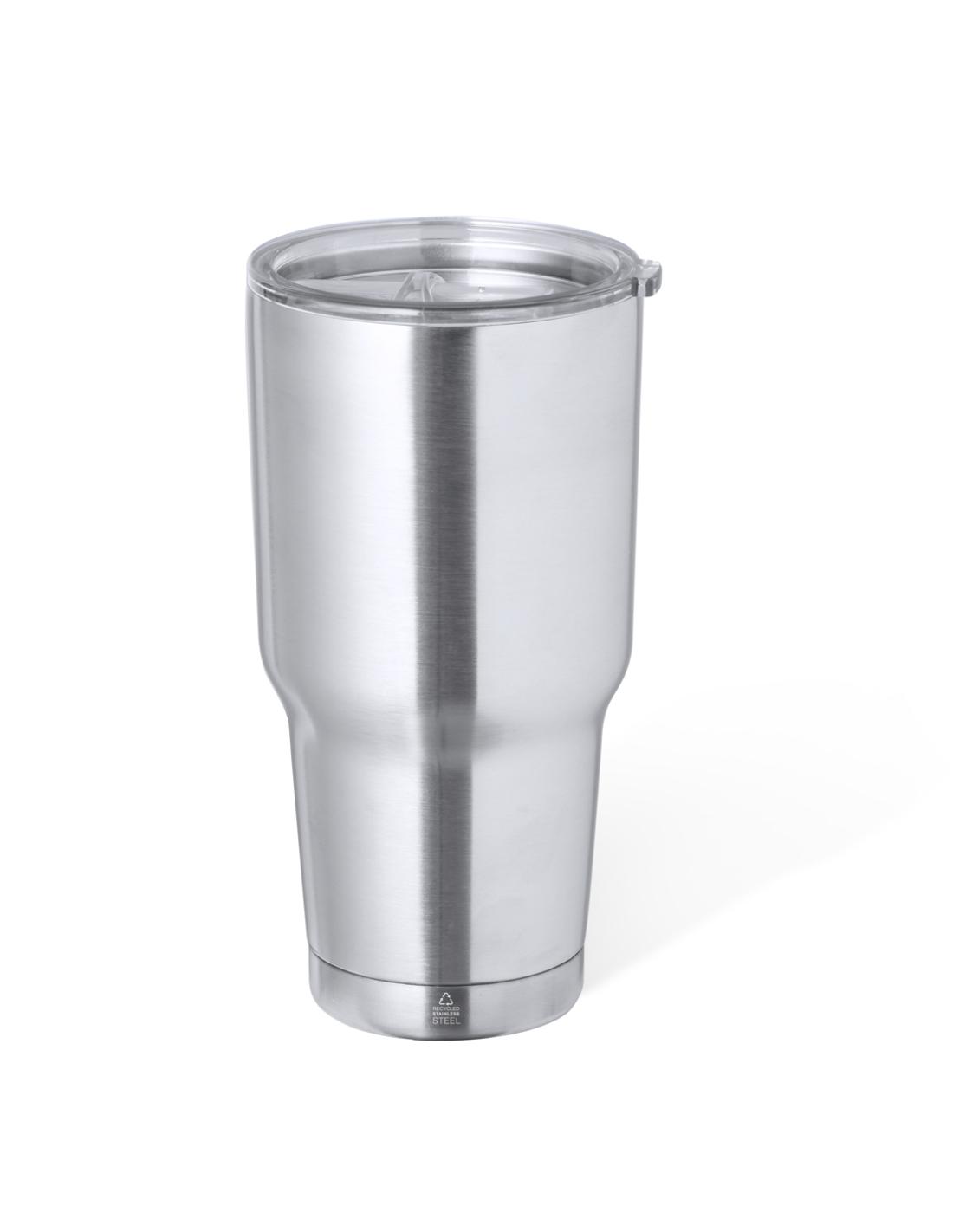 Vaso térmico fabricado en acero inox reciclado de doble pared y 800 ml de capacidad. Con dosificador en tapa de fácil apertura, libre de BPA, en acabado plata. Es ideal para tener en tu escritorio, mesa o en cualquier superficie donde disfrutar tranquilamente de tu bebida favorita. Con logotipo Acero Inox Reciclado. El acero es uno de los materiales más demandados y que puede encontrarse casi en todas partes, desde productos de uso diario a grandes construcciones. Con innumerables propiedades, entre las que cabe destacar la durabilidad y su alto grado de reutilización, convirtiéndolo en una alternativa muy valorada en soluciones de sostenibilidad. Debidamente tratado, permite obtener nuevos recursos de infinita utilización.